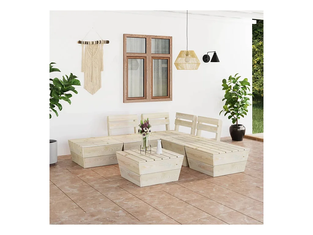 Salon de jardin palette 6 pcs Bois d'épicéa imprégné BE62268