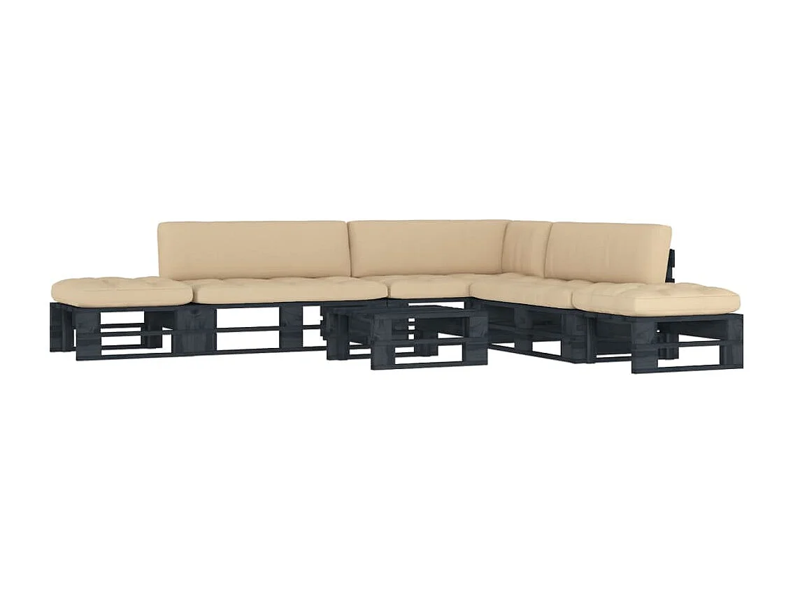 Salon de jardin palette 6 pièces et coussins pin imprégné de noir