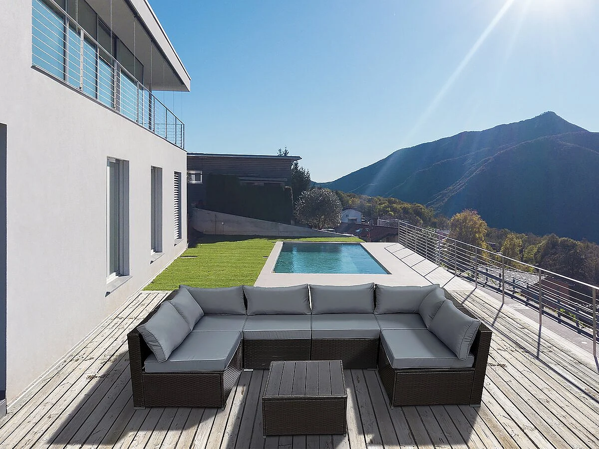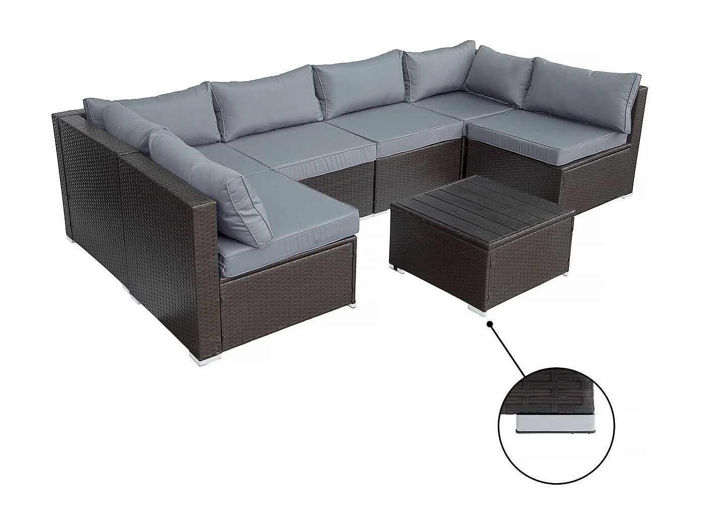 Salon de jardin panoramique en résine tressée "Océane" - 6 places - Marron