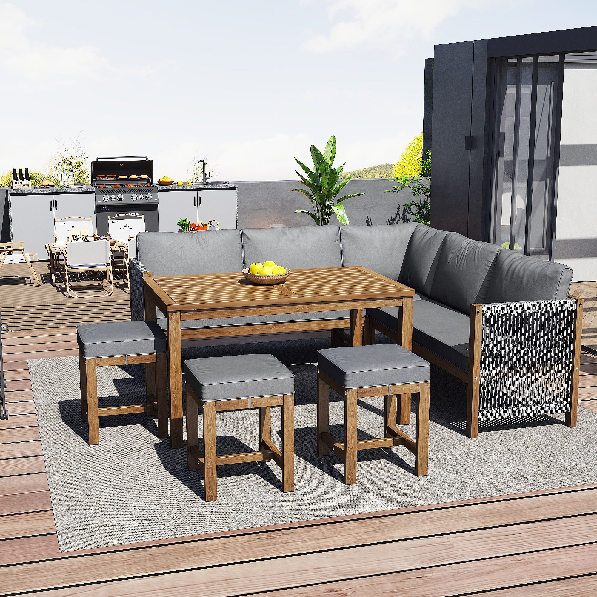 Salon de jardin pour 7-8 personnes - 2 canapés,3 tabourets et 1 table à manger - structure en Bois d'acacia - Gris
