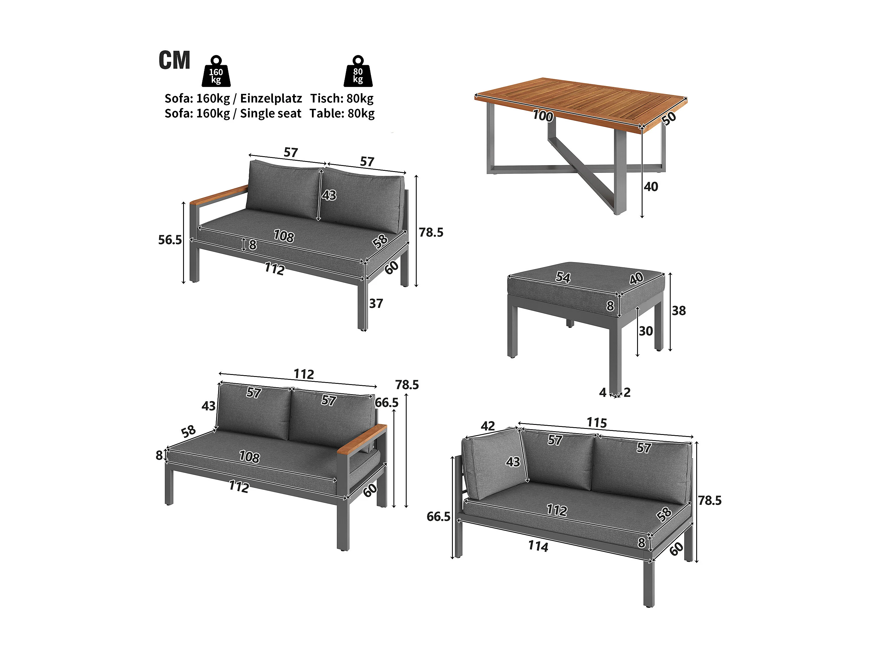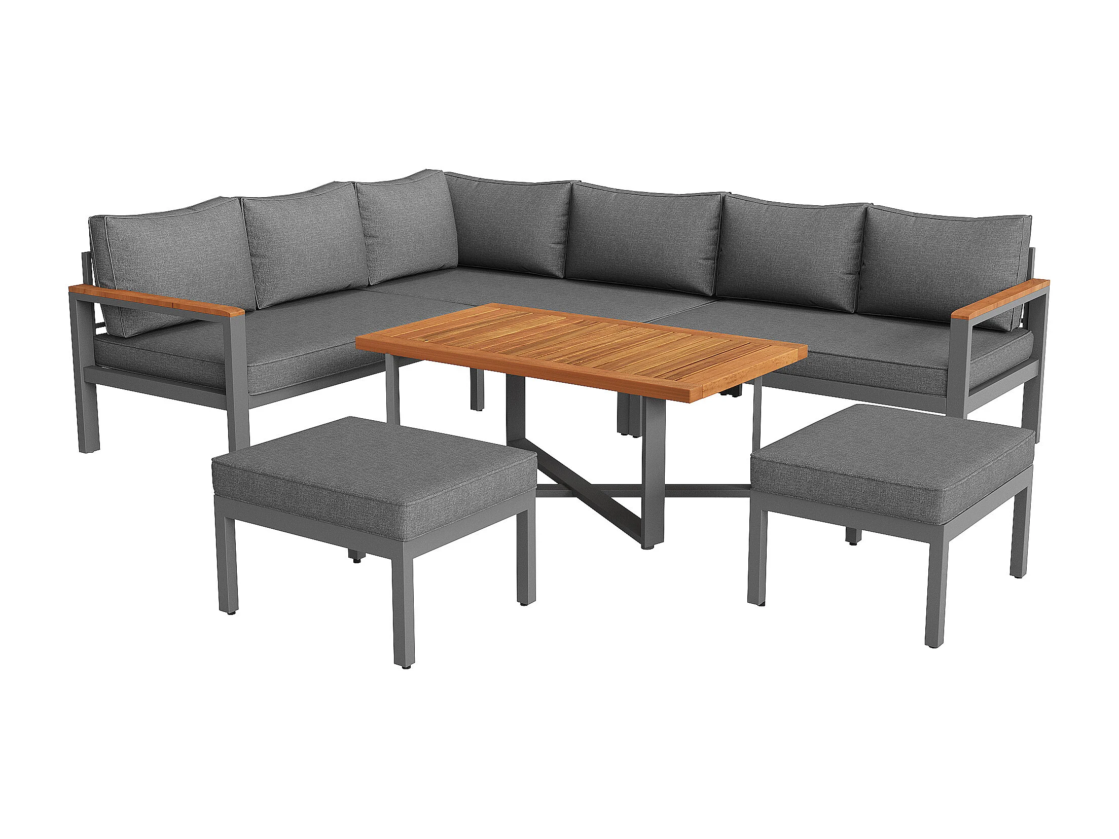 Salon de jardin pour 7-8 personnes, ensemble de salle à manger pour groupe de sièges tout temps, avec structure en fer galvanisé