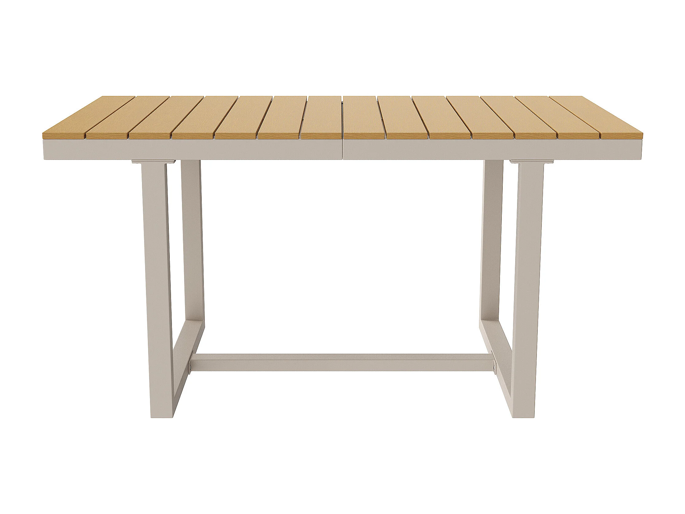 Salon de Jardin Repas 7 Pièces - Table 140cm Plateau Effet Bois et 6 Chaises en Corde Tressée avec Coussins - Aluminium Résistant - Beige et Gris Clair