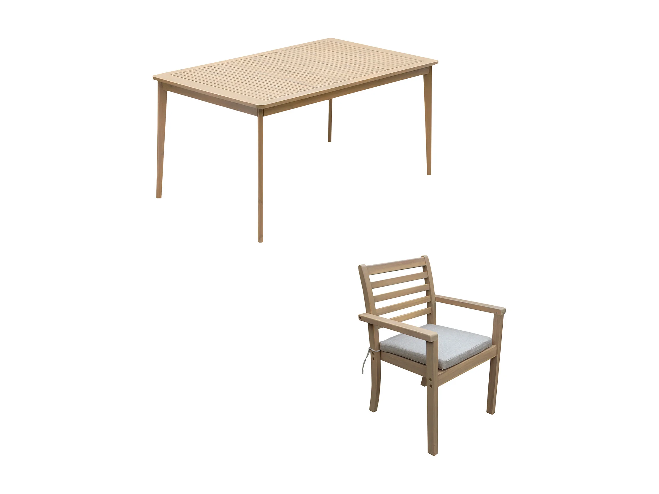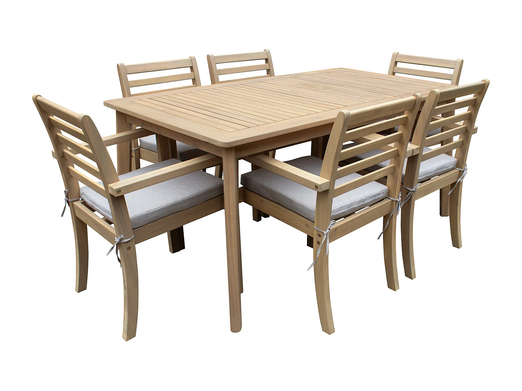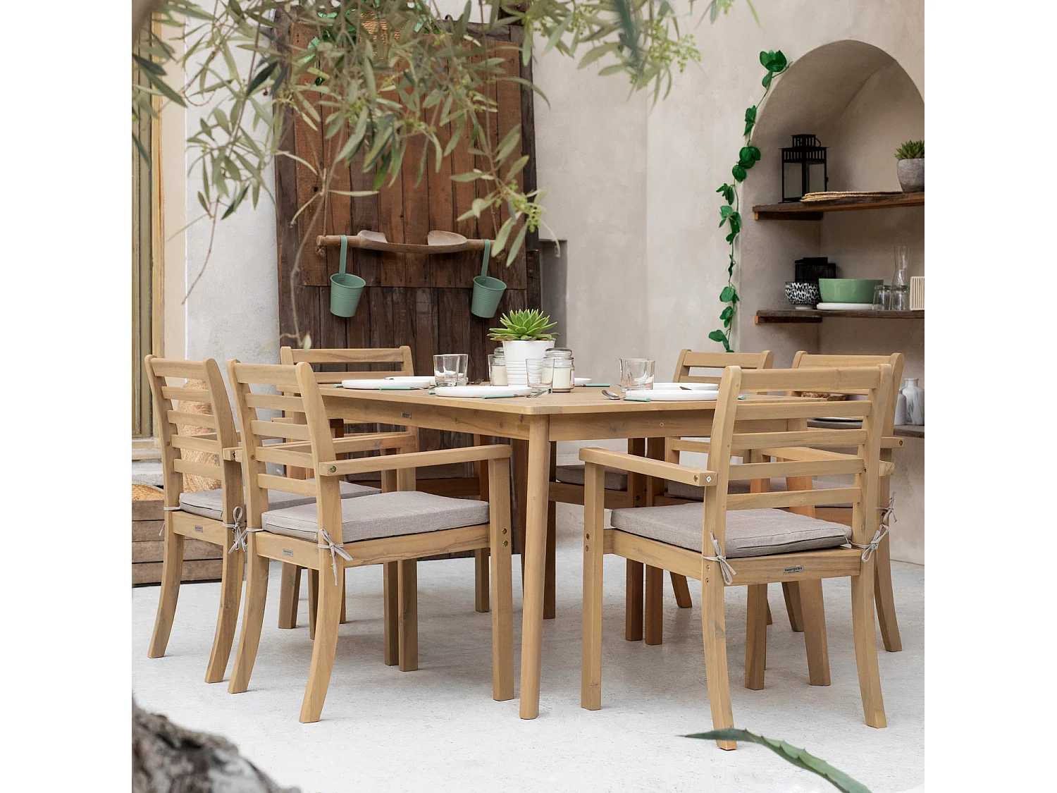 Salon de jardin SIMILAN en acacia 6 places - coussins sable - HAPPY GARDEN