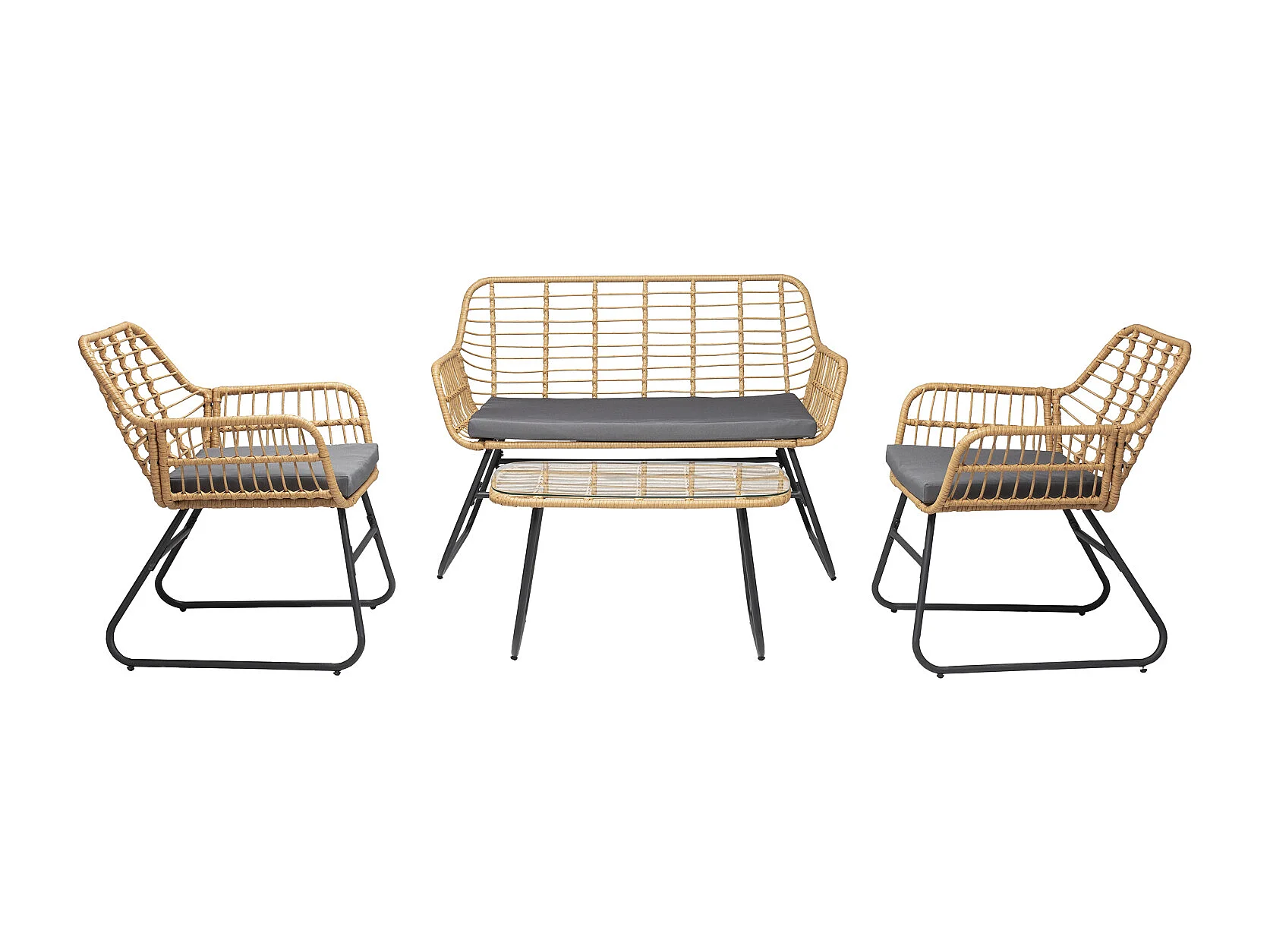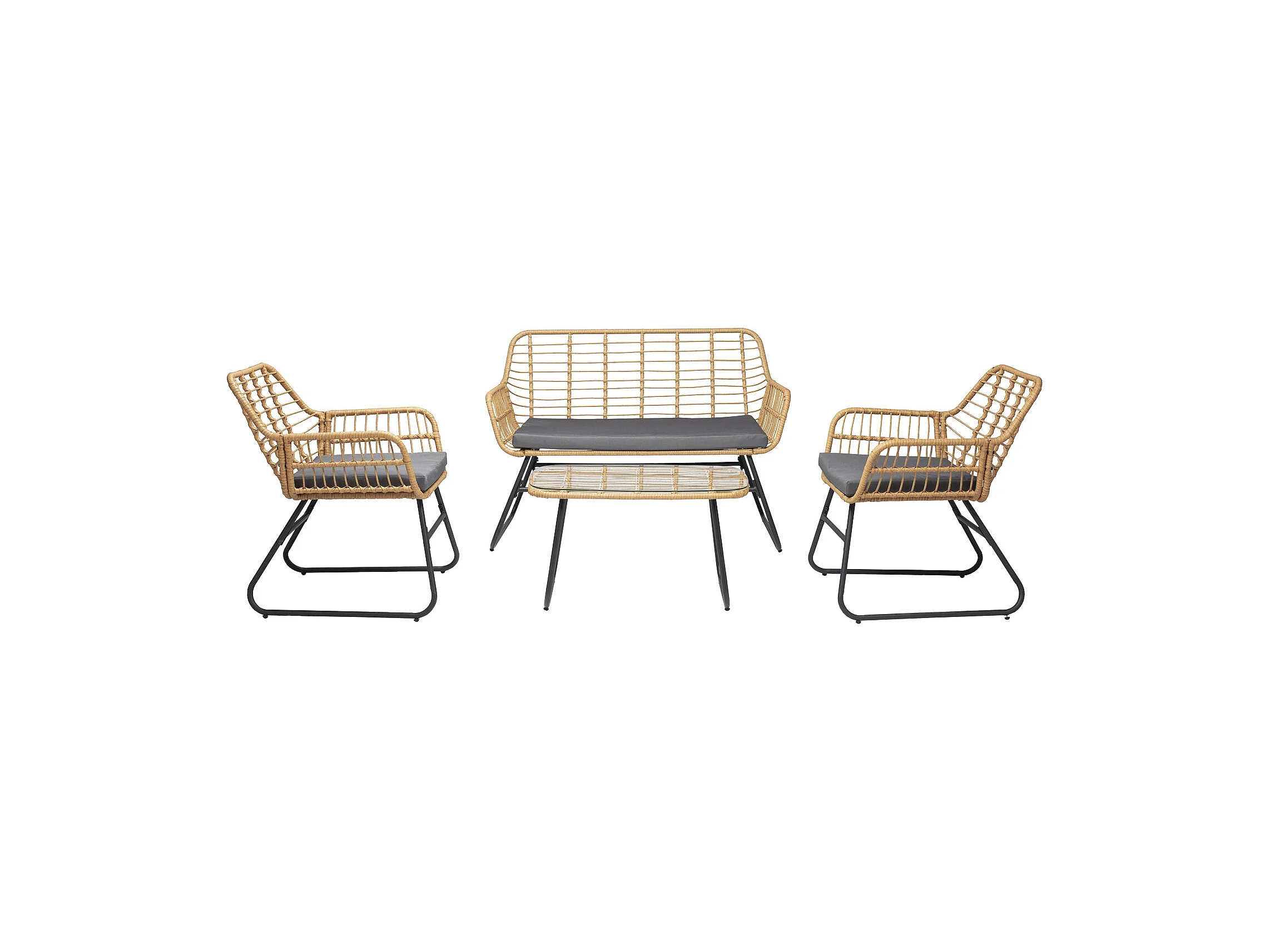 Salon de jardin TIGA en résine tressée 4 places - coussins gris - HAPPY GARDEN