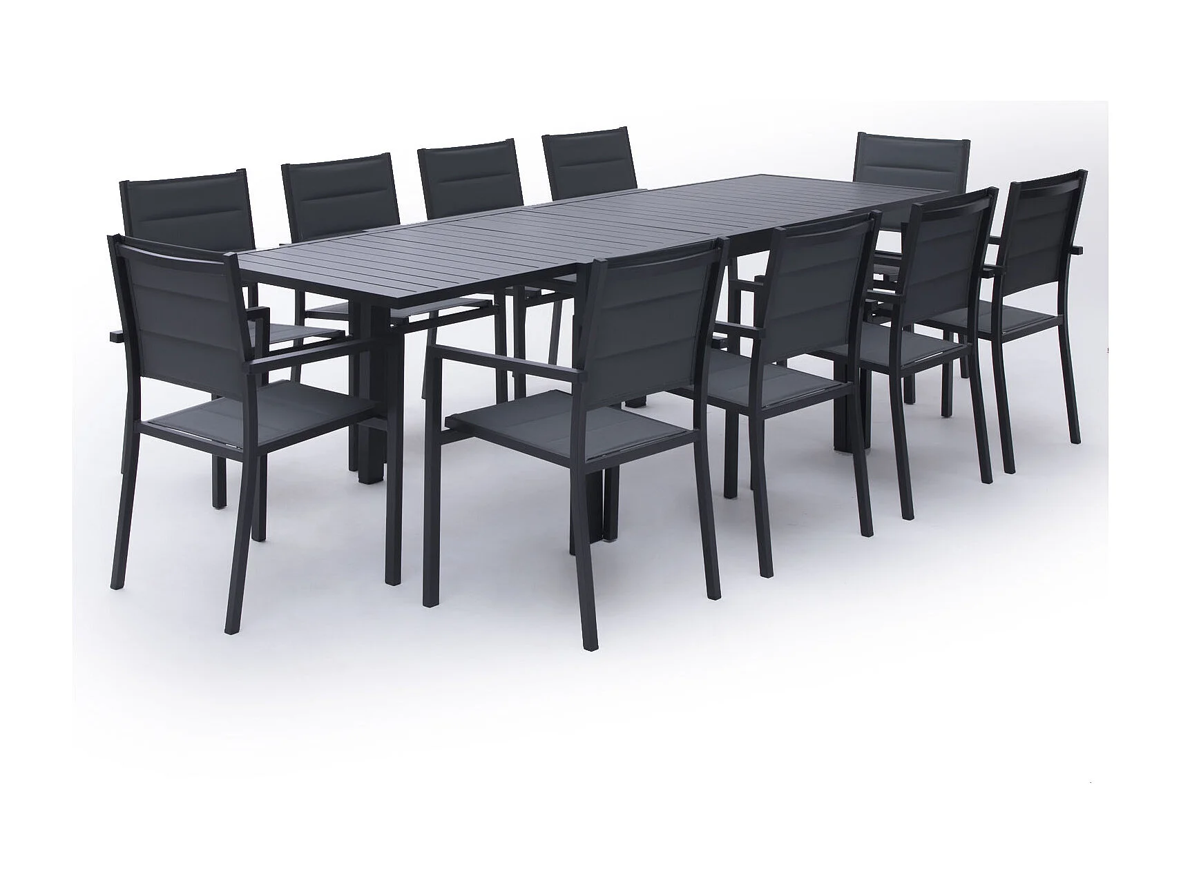 Salon de jardin VENEZIA extensible en textilène gris 10 places - aluminium anthracite