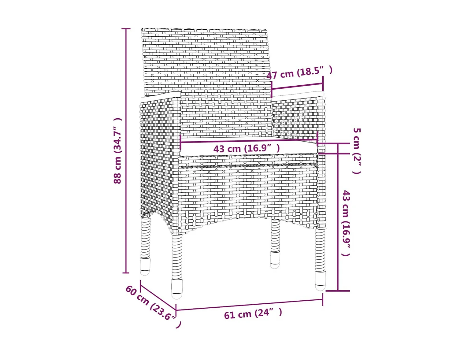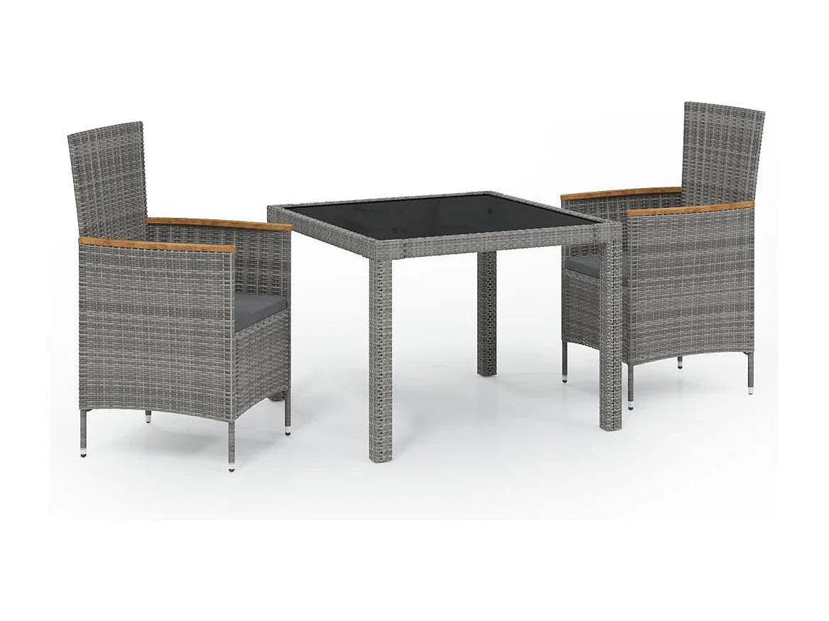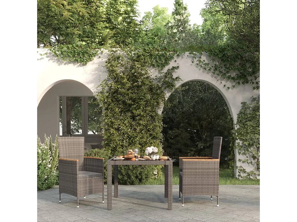 Ensemble à manger d'extérieur 3 pcs et coussins Résine tressée