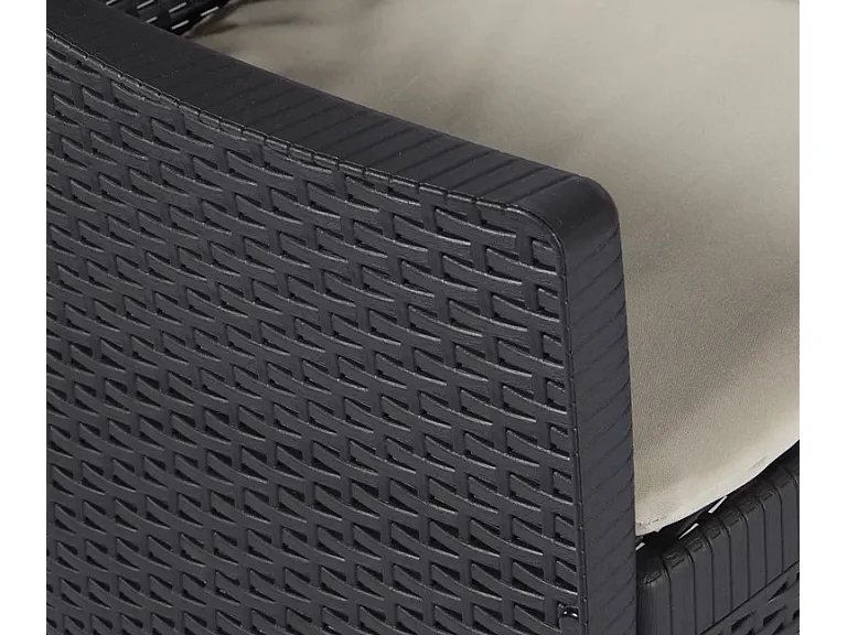 Set salon d’extérieur Foggia, Salon de jardin composé de 2 fauteuils et 1 table basse, Salon effet rotin avec coussins, 100% Made in Italy, Anthracite