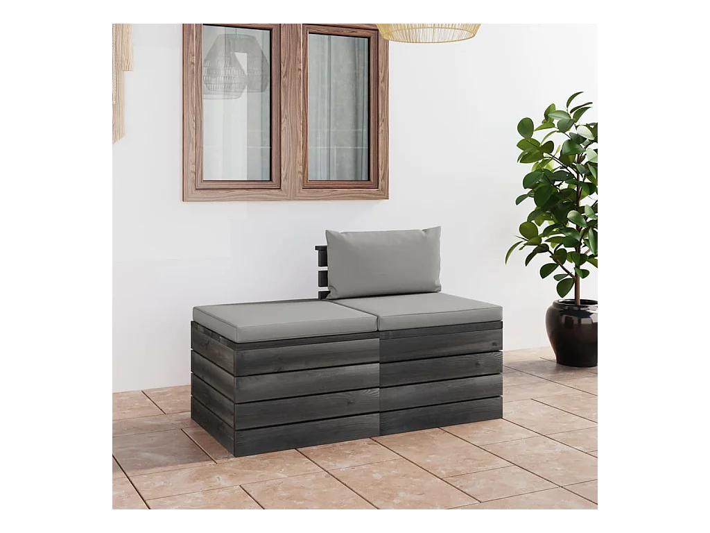 Salon palette de jardin 2 pcs avec coussins Bois de pin massif