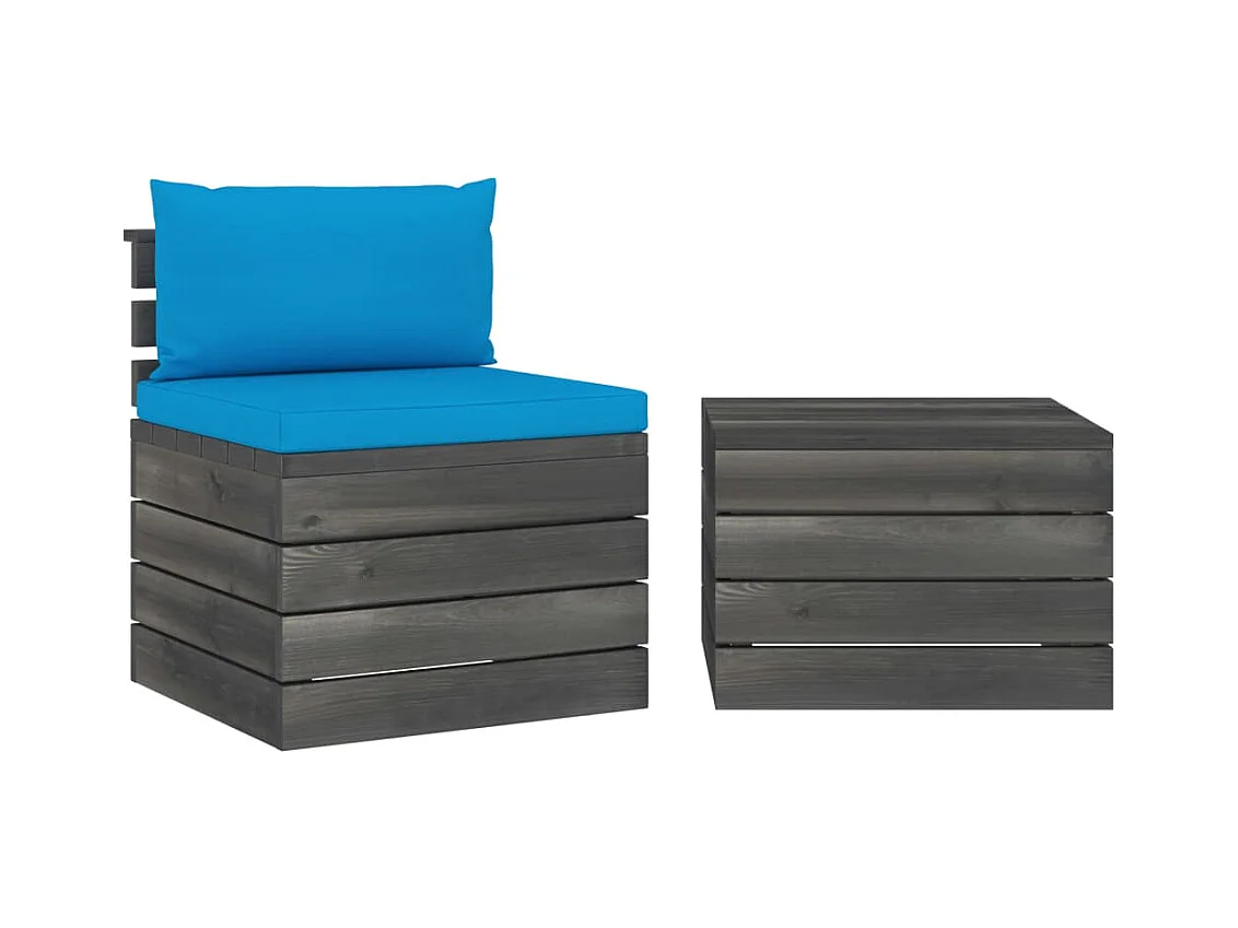 Salon palette de jardin 2 pcs avec coussins Bois de pin massif BE51786