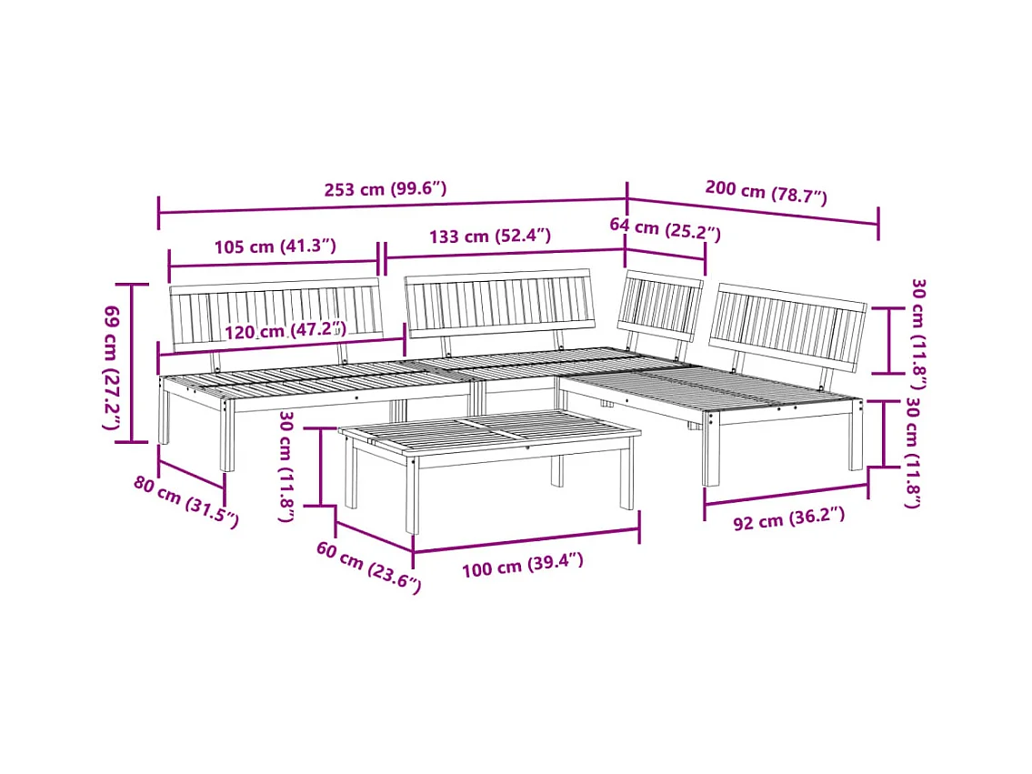 Salon complet de jardin Canapé 2 places et 2 fauteuils