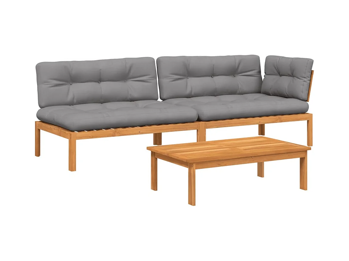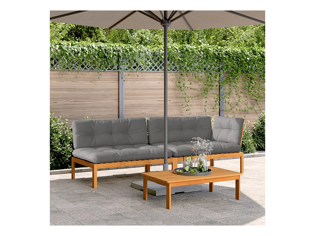 Salon palette de jardin avec coussins 3pcs bois d'acacia massif