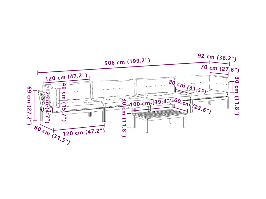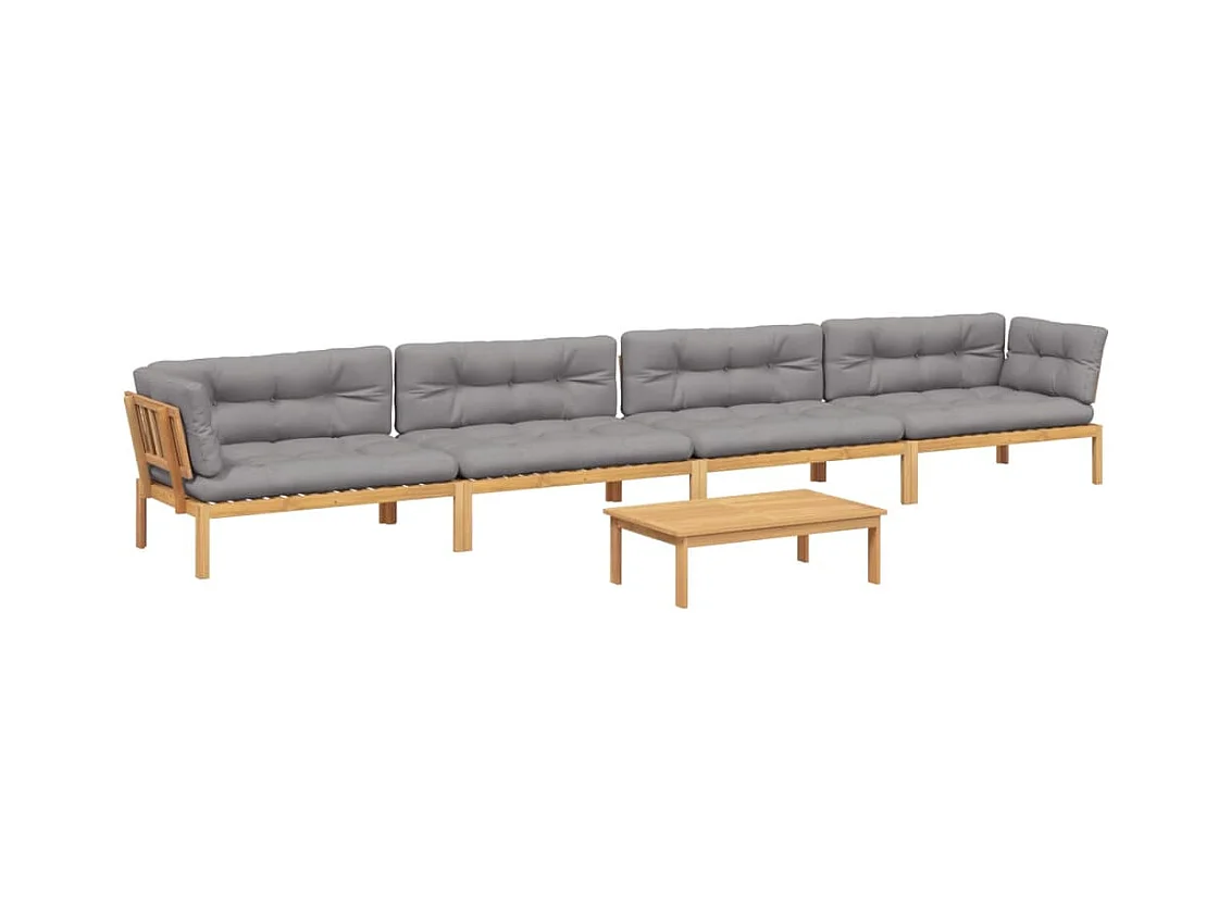 Salon palette de jardin avec coussins 5pcs bois d'acacia massif