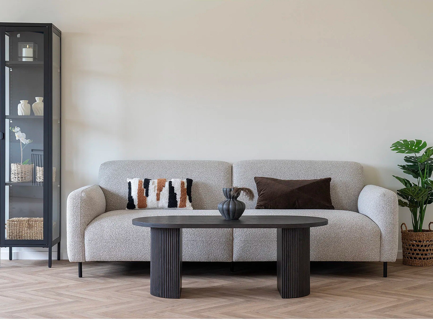 Canapé 3 places SALVADOR – Tissu bouclé gris clair
