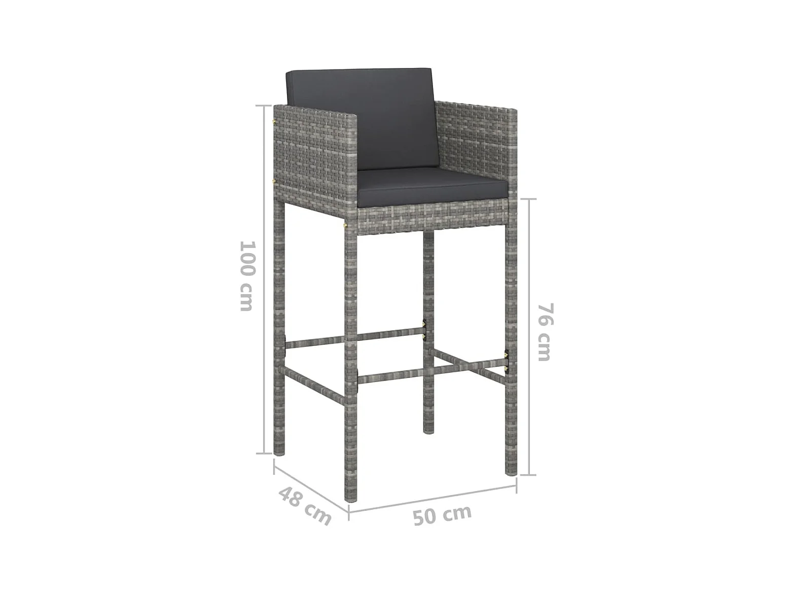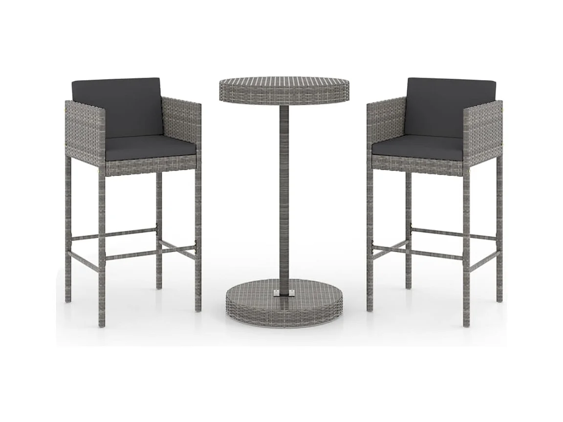 San Ferdinando di Puglia Ensemble de bar de jardin 3 pcs et coussins Résine tressée Gris