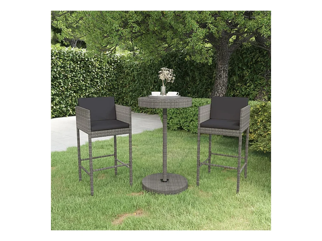 Thylvi Ensemble de bar de jardin 3 pcs et coussins Résine tressée Gris