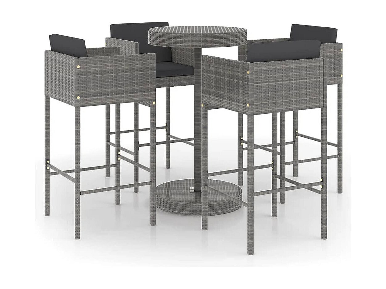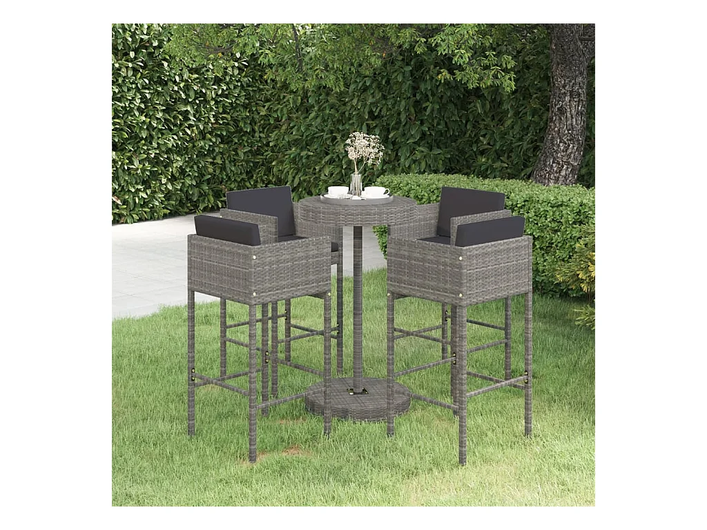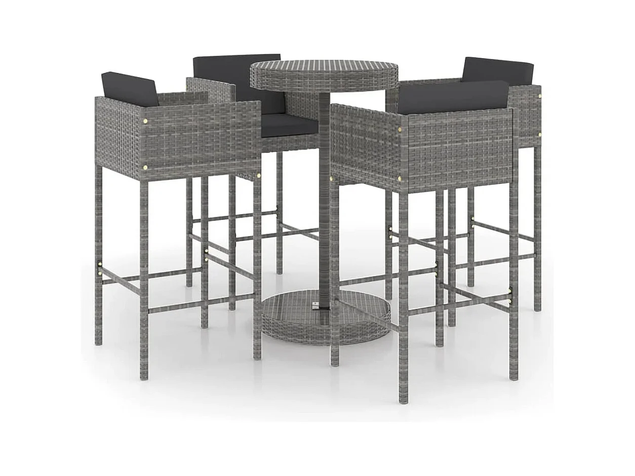 San Ferdinando di Puglia Ensemble de bar de jardin 5 pcs et coussins Résine tressée Gris