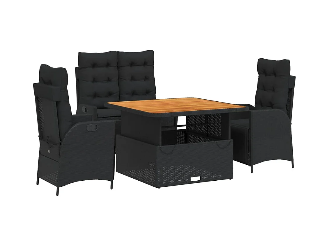 Marius Ensemble à manger de jardin 4 pcs avec coussins noir