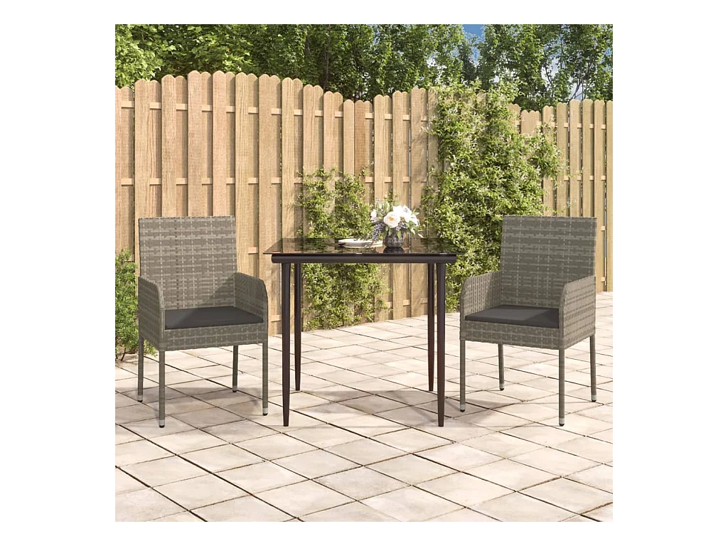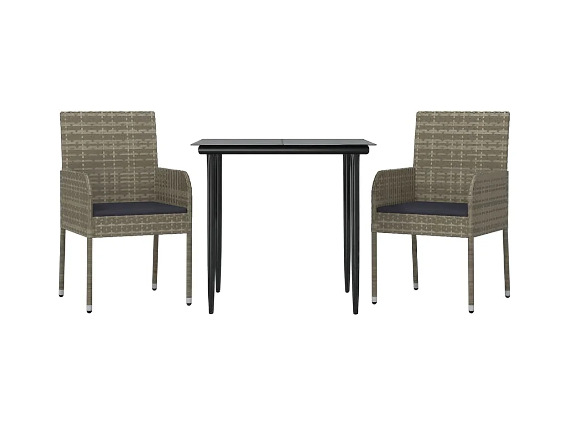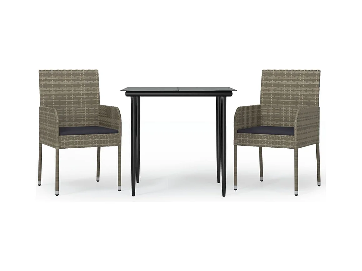 Zyldr Ensemble à manger jardin 3pcs avec coussins noir et gris
