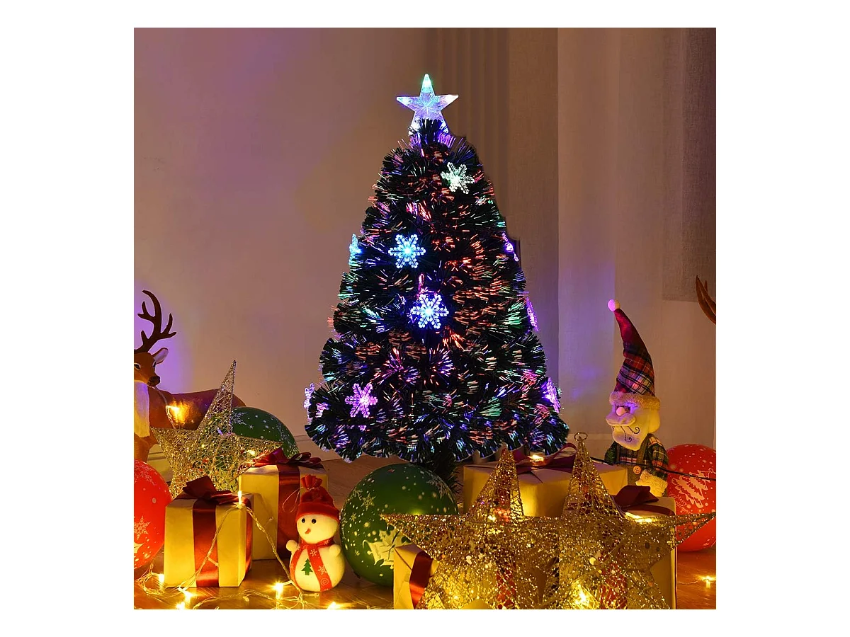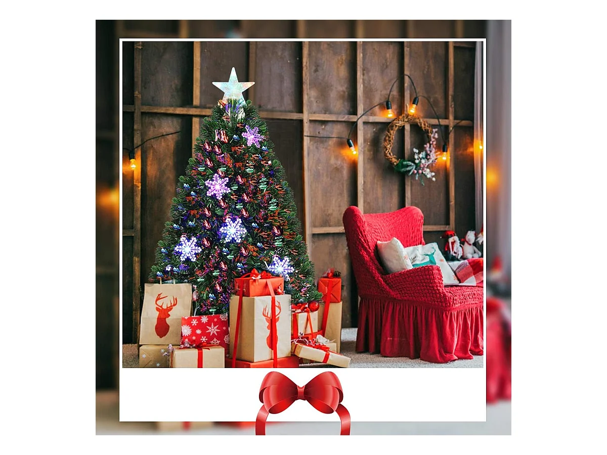 Sapin de noël arbre de noël artificiel avec lumières led flocon de neige et pied matériau pvc pour décoration de noël 120cm