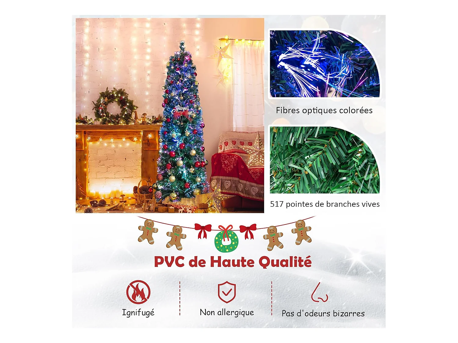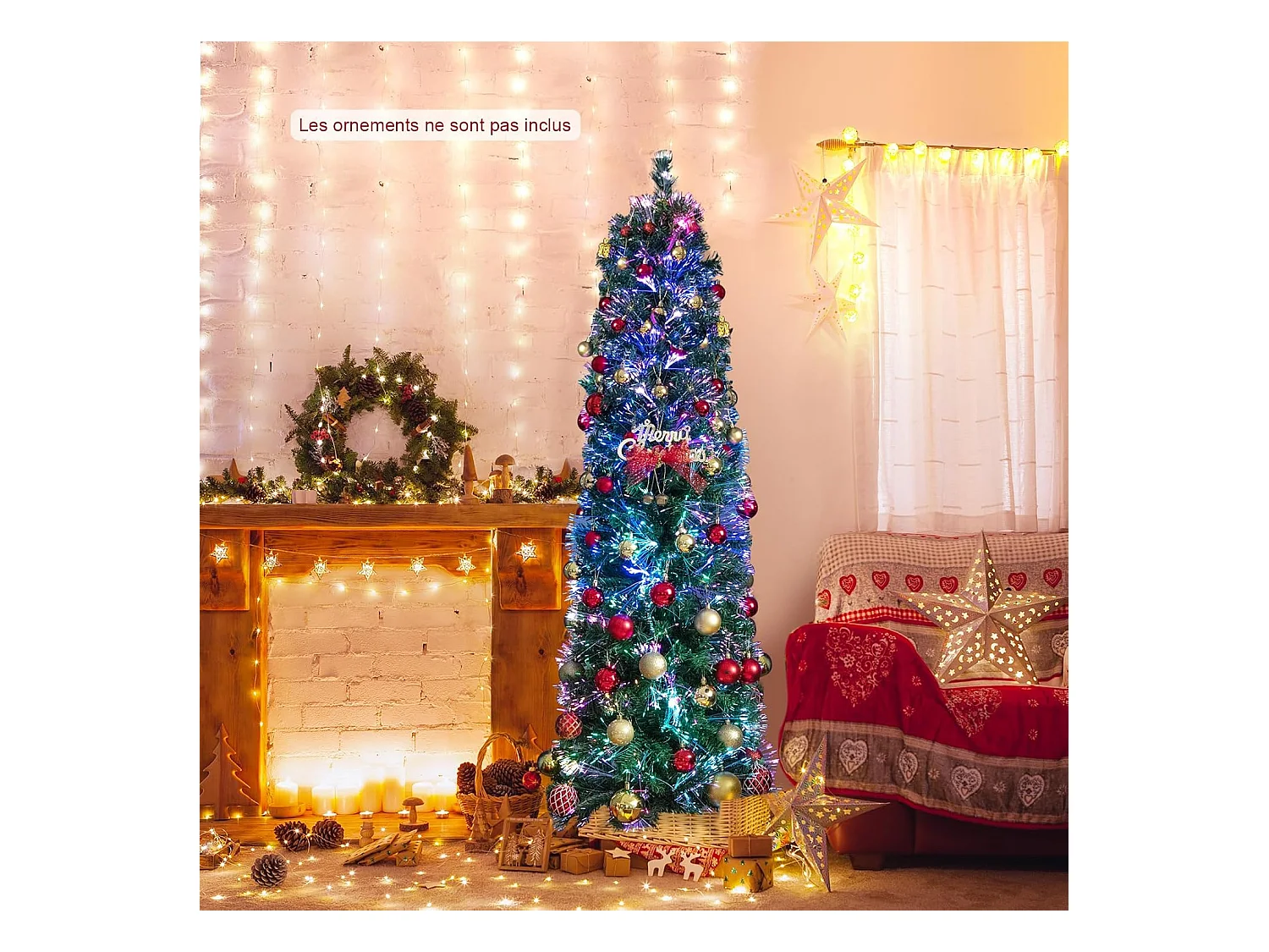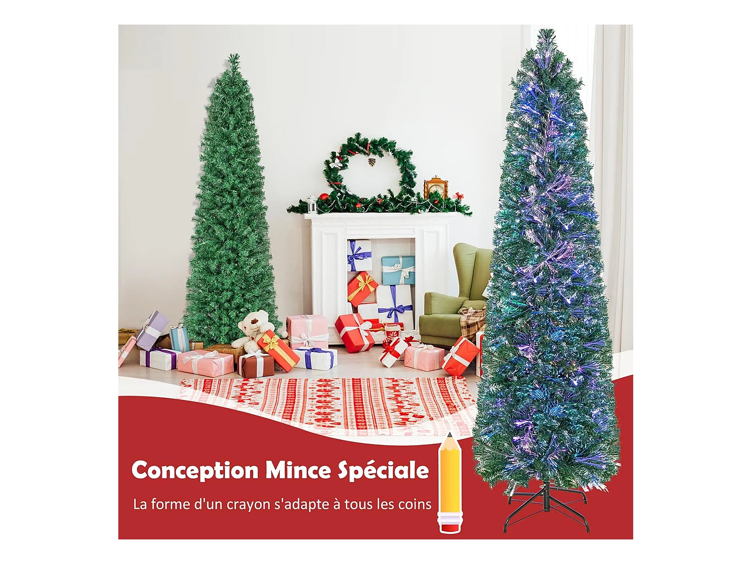 Sapin de Noël, Arbre de Noël Lumineux à Fibre Optique avec Base en Fer, Sapin de Noël Artificiel en PVC, Vert, Décoration de Noël pour Maison, Entreprise, Magasin (180 cm)