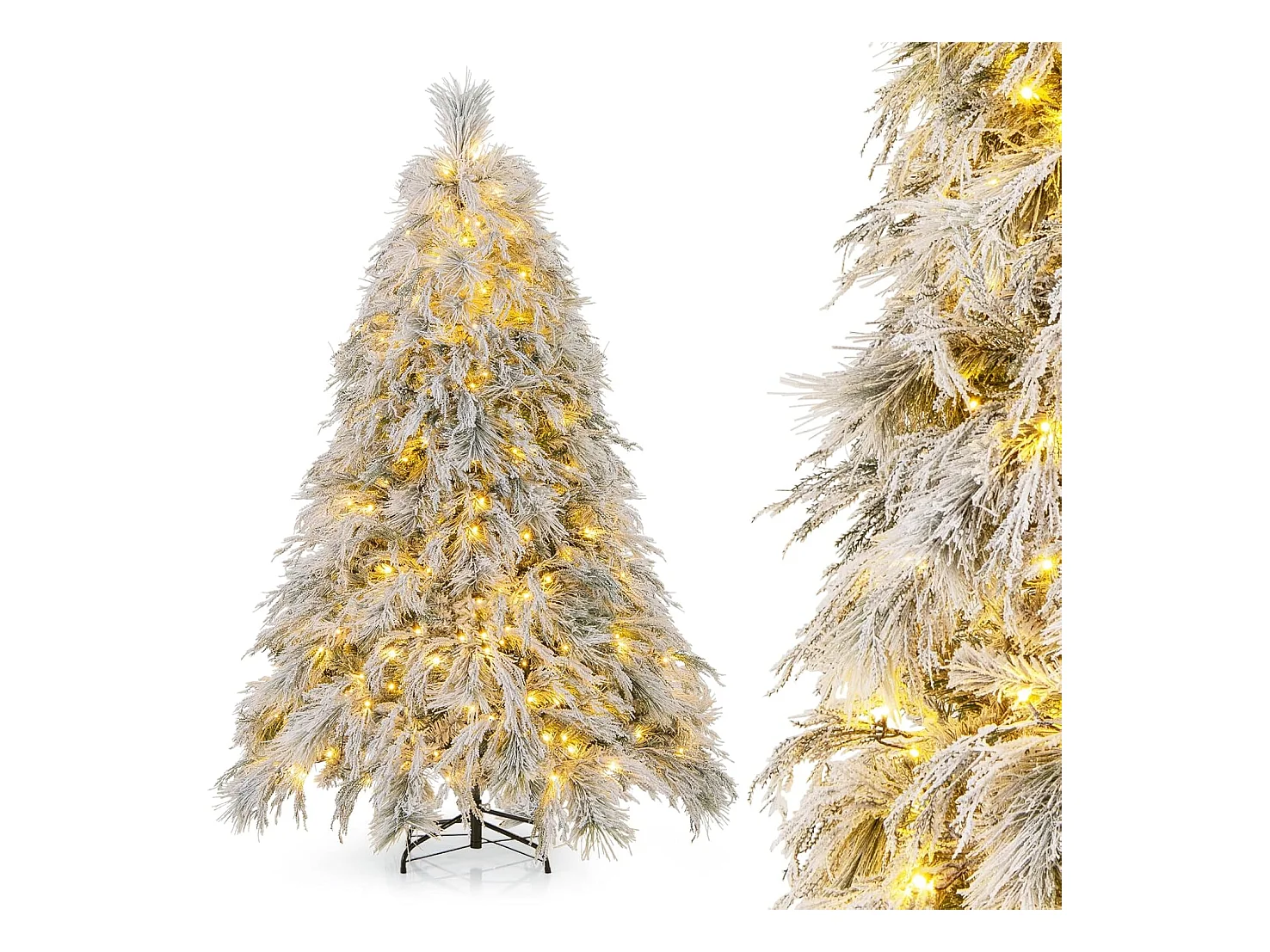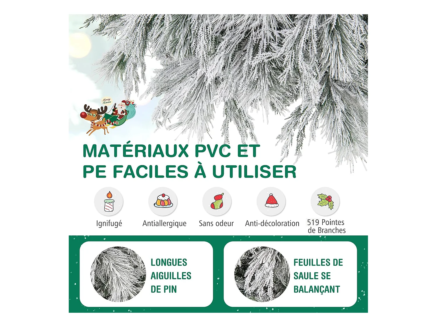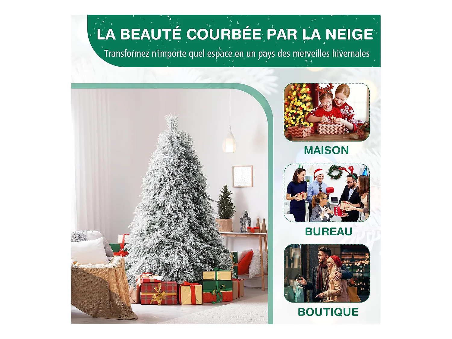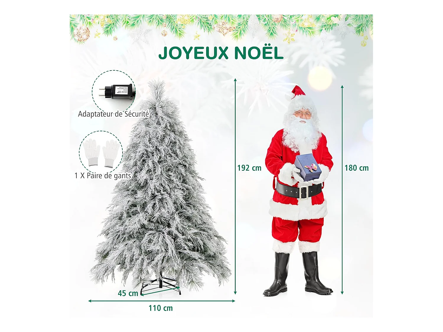 Sapin de Noël pré-éclairé avec neige floquée/cônes 195cm PVC/PE