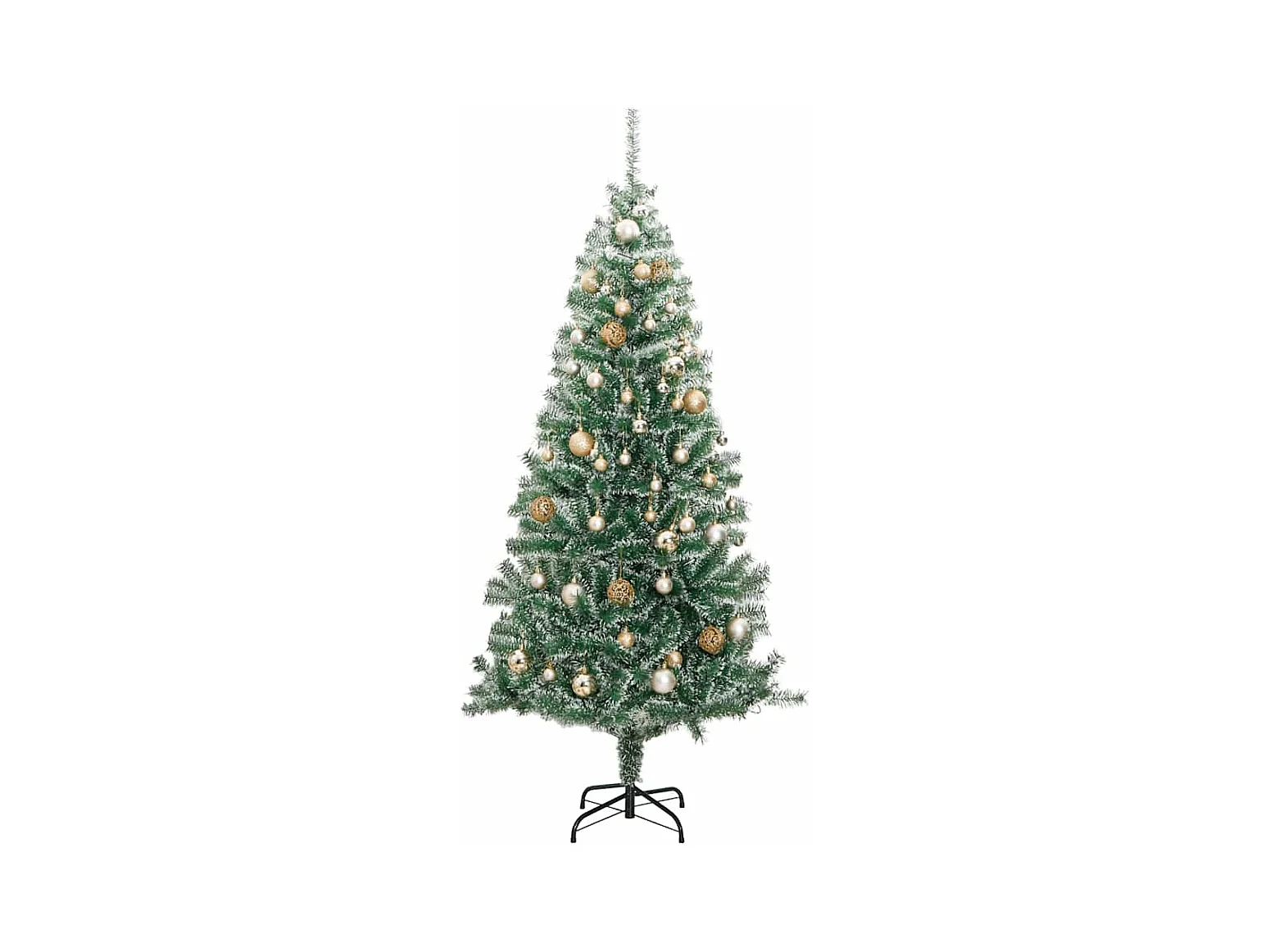 Sapin de Noël artificiel 150 LED&boules&neige floquée 120 cm