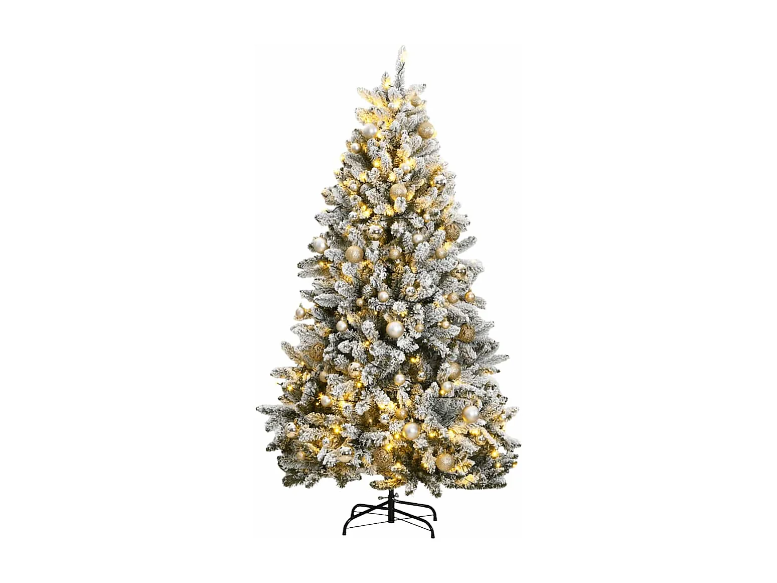 Sapin de Noël artificiel 300 LED&boules&neige floquée 210 cm