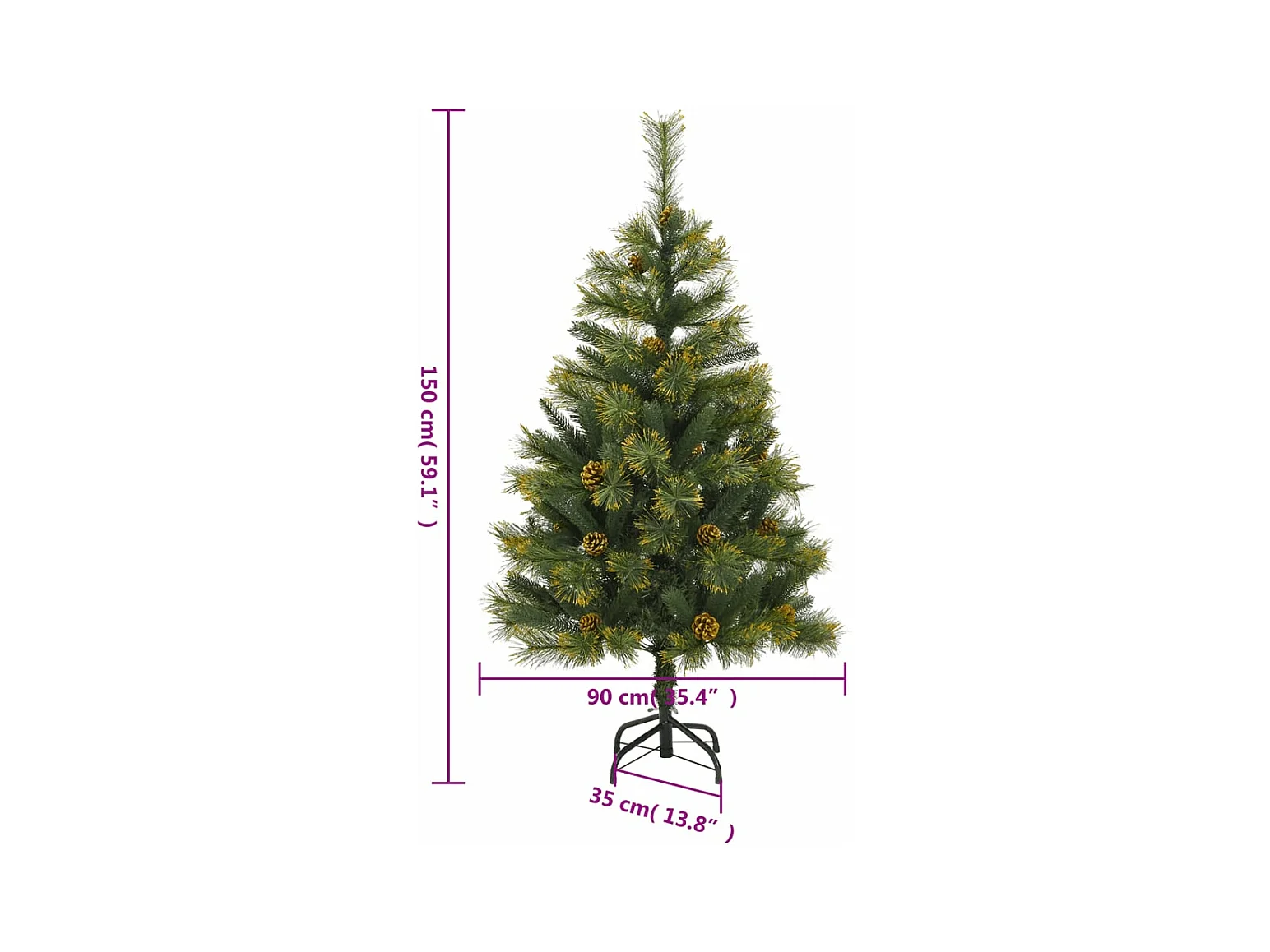 Sapin de Noël artificiel avec branches pliables et cônes 150 cm
