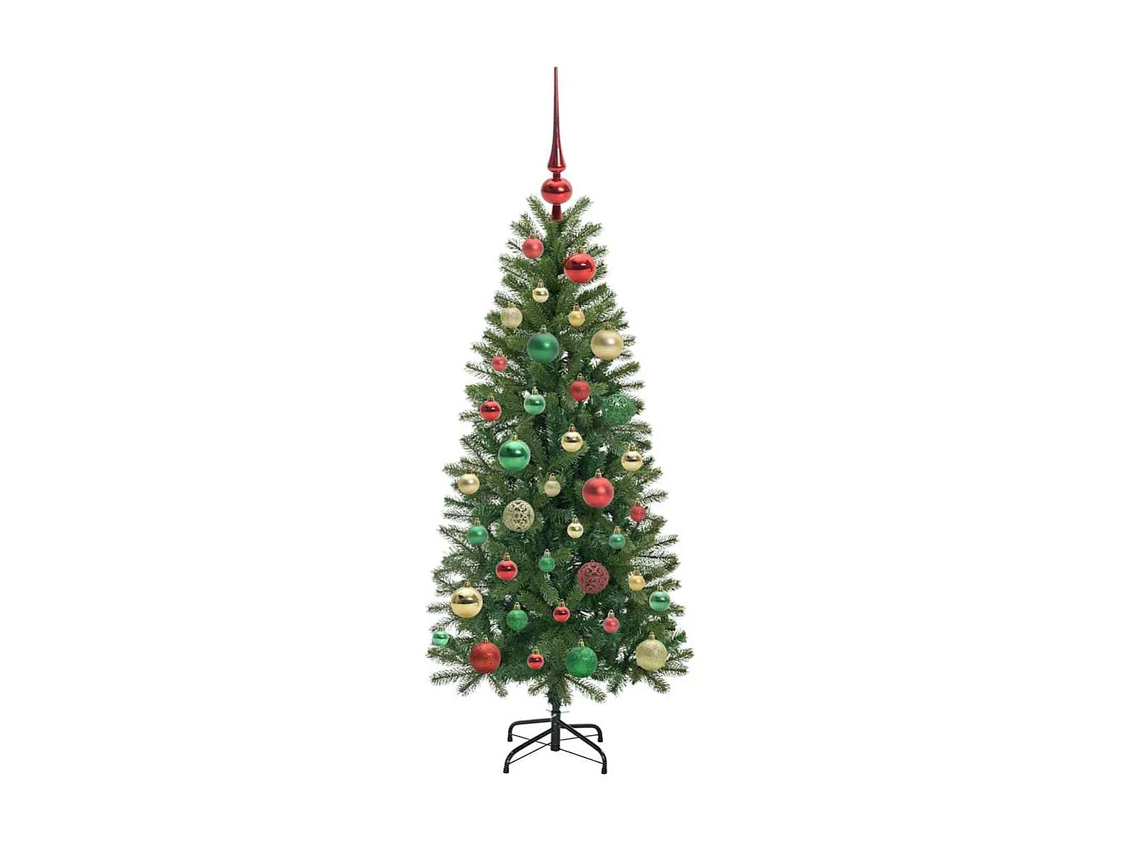 Demi-arbre de Noël artificiel pré-éclairé et boules vert 210 cm