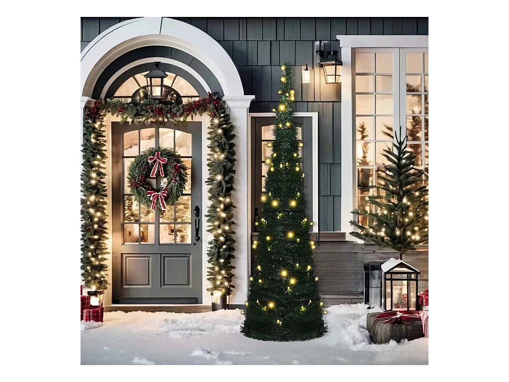 Arbre de Noël hélicoïdal pré-éclairé et support vert 150 cm PVC