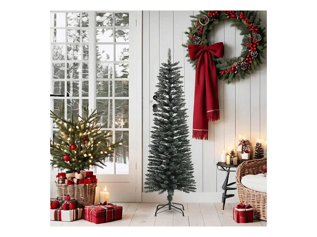 Sapin de Noël artificiel mince avec support Vert 150 cm PVC