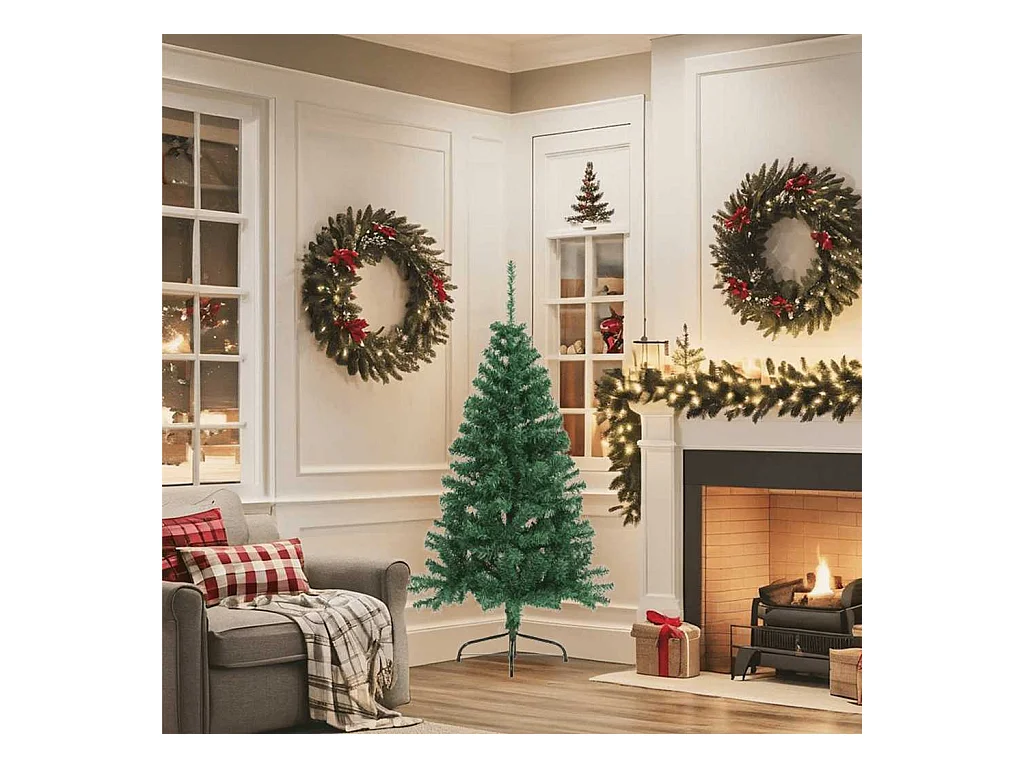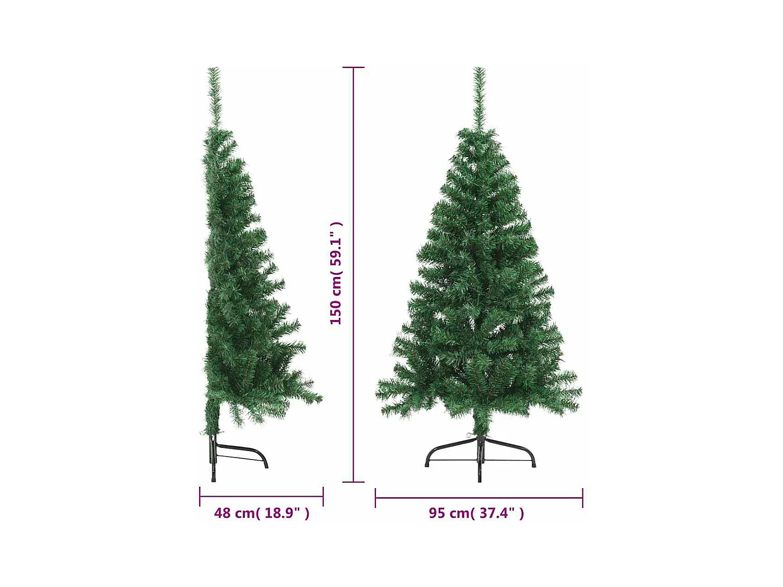 Sapin de Noël artificiel moitié avec support vert 150 cm PVC
