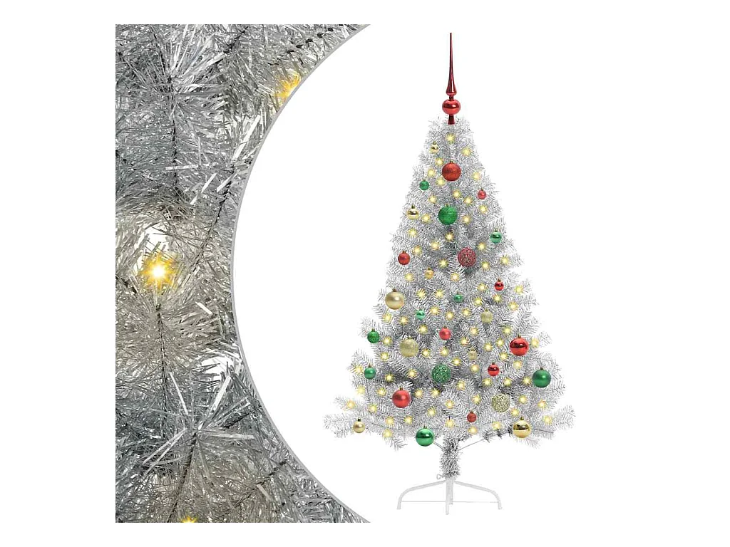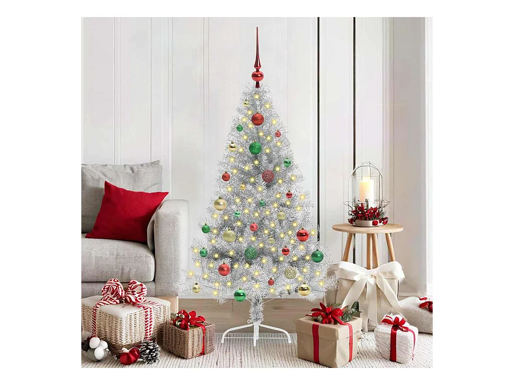 Arbre de Noël artificiel pré-éclairé/boules argenté 150 cm PET