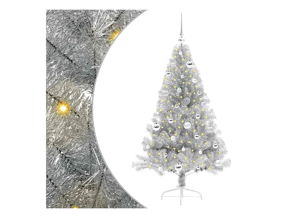 Arbre de Noël artificiel pré-éclairé/boules argenté 150 cm PET