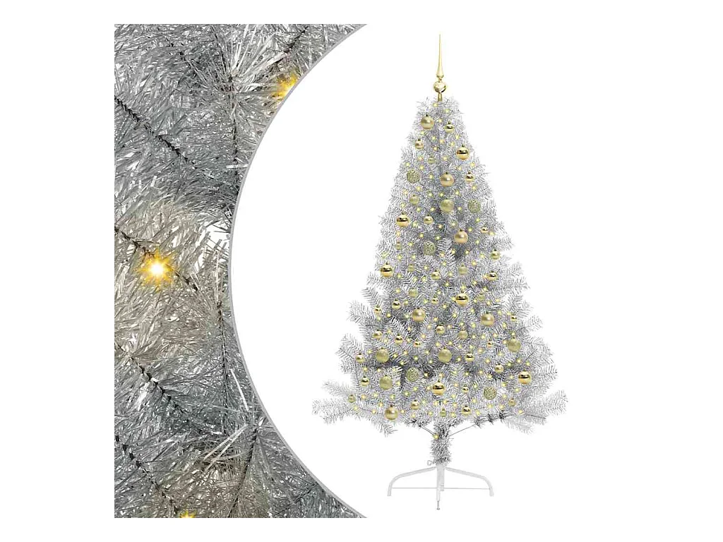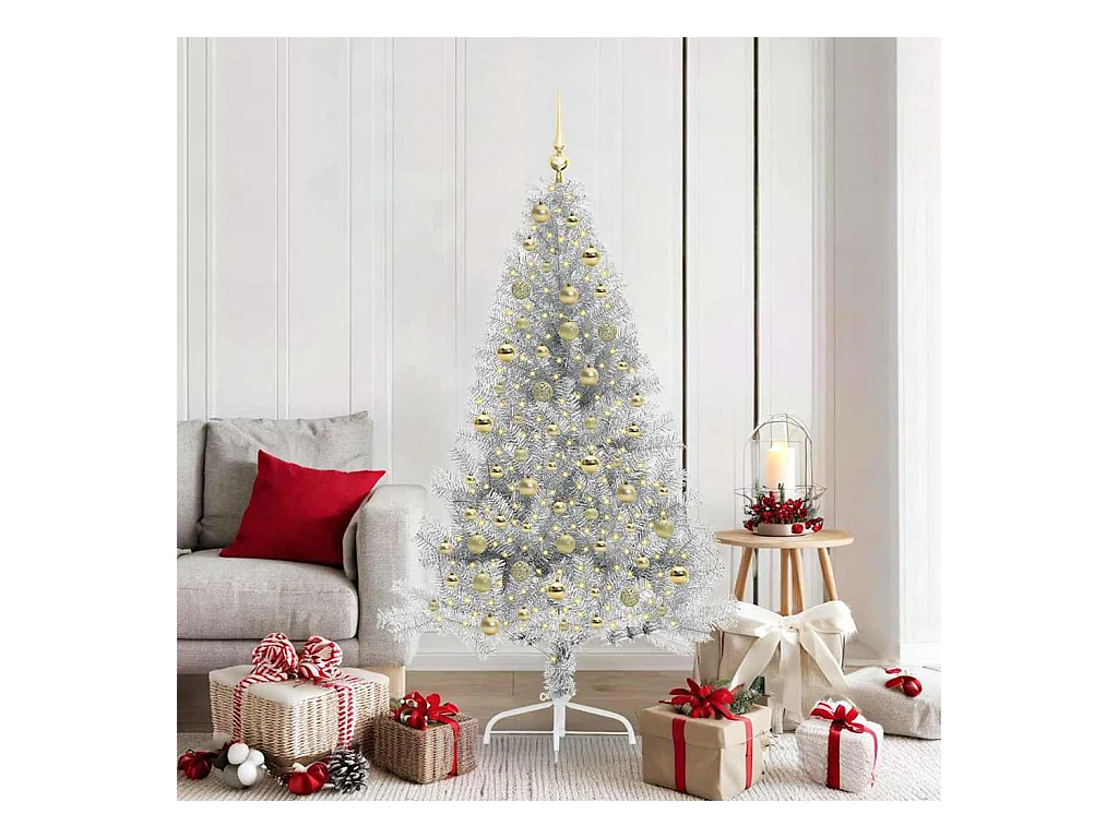 Sapin de Noël artificiel pré-éclairé Argent 180 cm PET