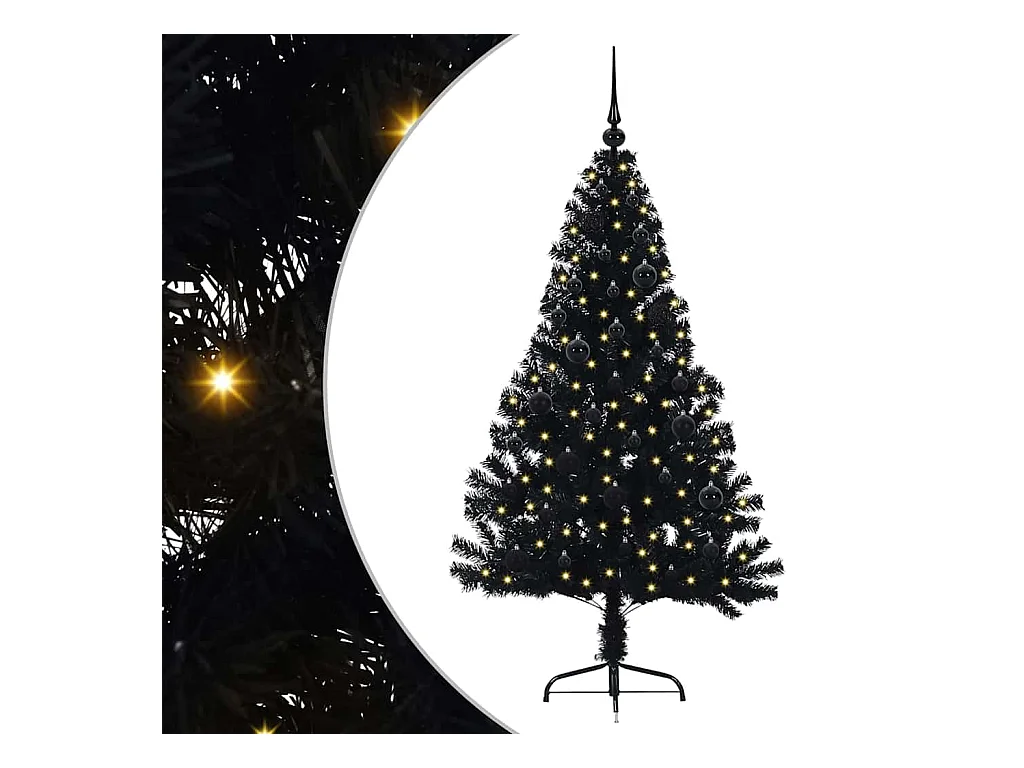Sapin de Noël artificiel pré-éclairé Noir 150 cm PVC