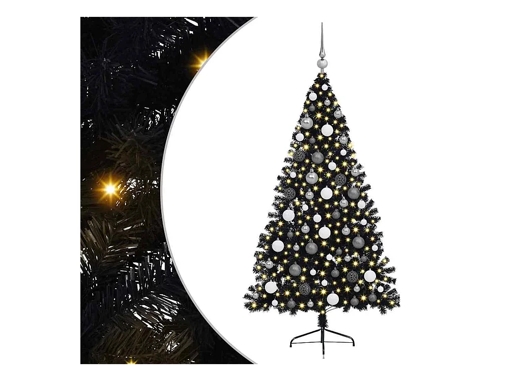 Sapin de Noël artificiel pré-éclairé Noir 180 cm PVC