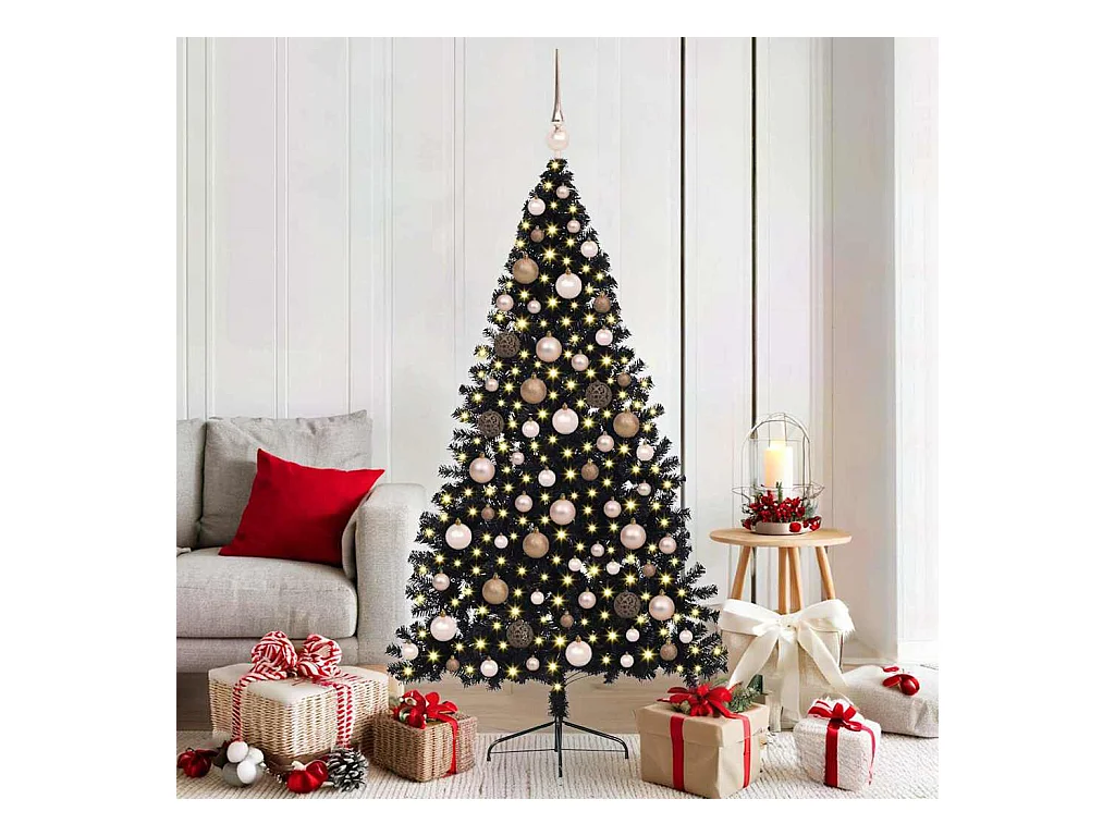 Sapin de Noël artificiel pré-éclairé Noir 180 cm PVC