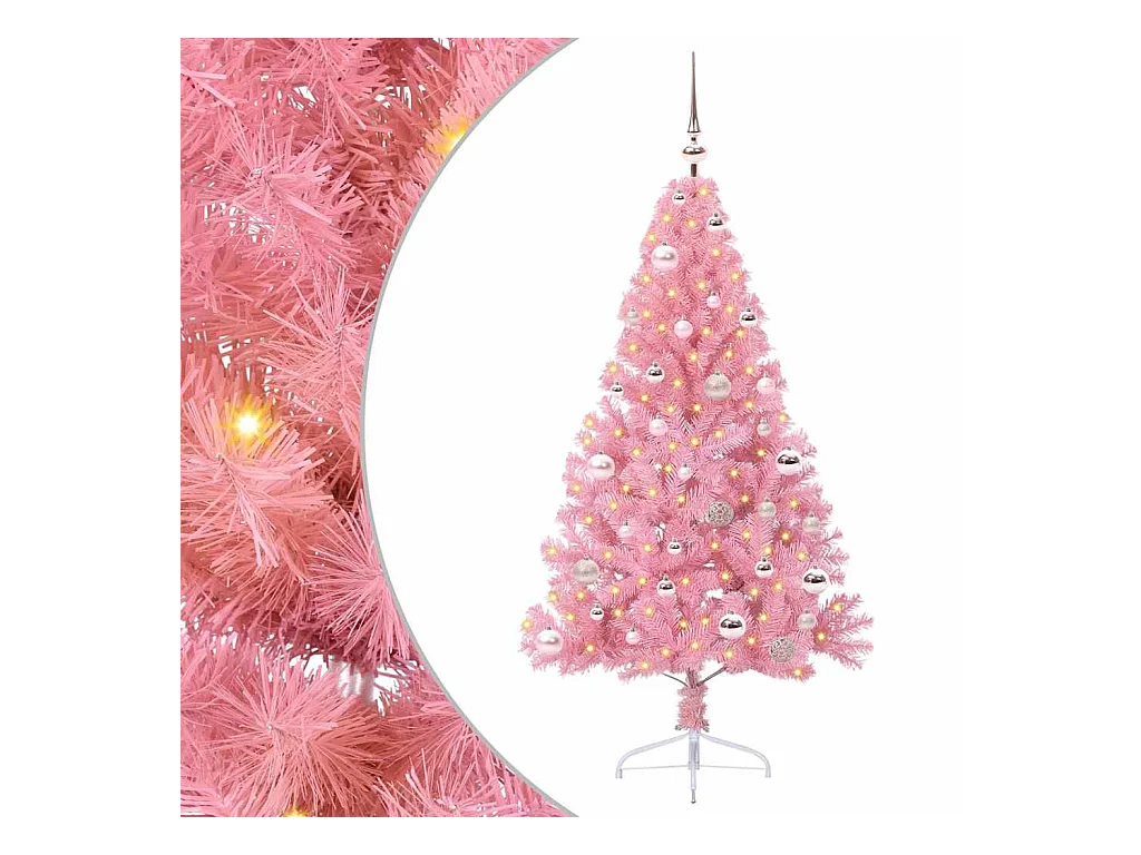 Sapin de Noël artificiel pré-éclairé Rose 150 cm PVC