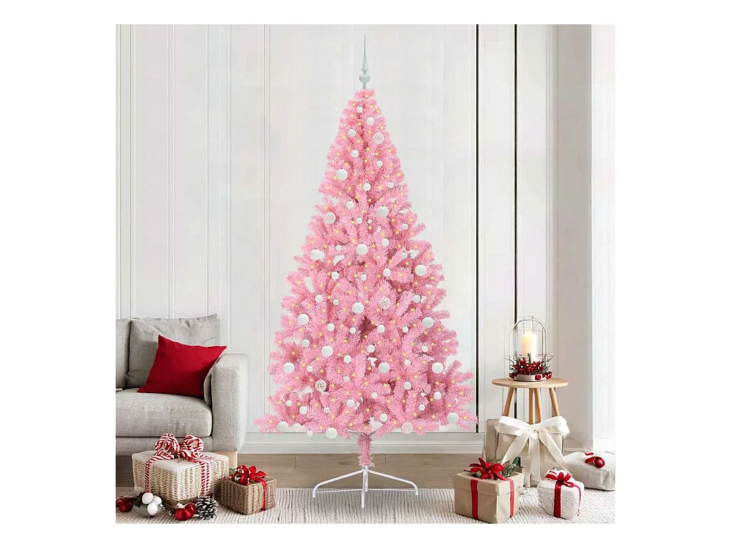 Sapin de Noël artificiel pré-éclairé Rose 240 cm PVC