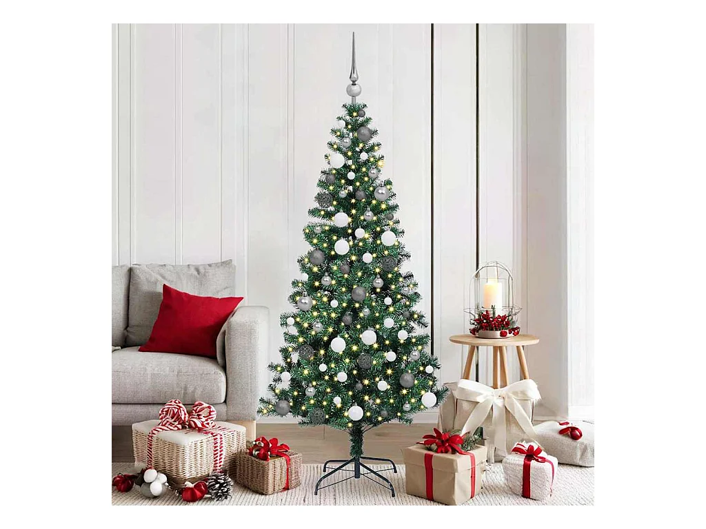 Sapin de Noël artificiel pré-éclairé Vert 180 cm PVC et métal