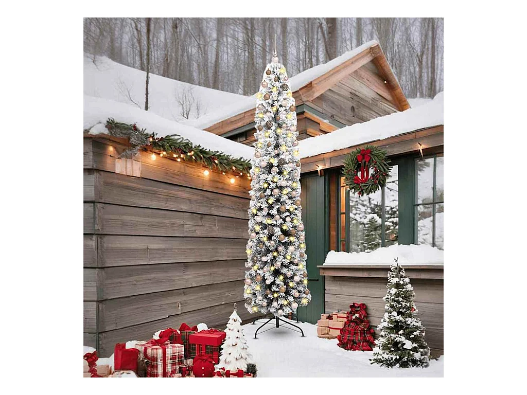 Demi sapin de Noël artificiel mince avec neige floquée 240 cm