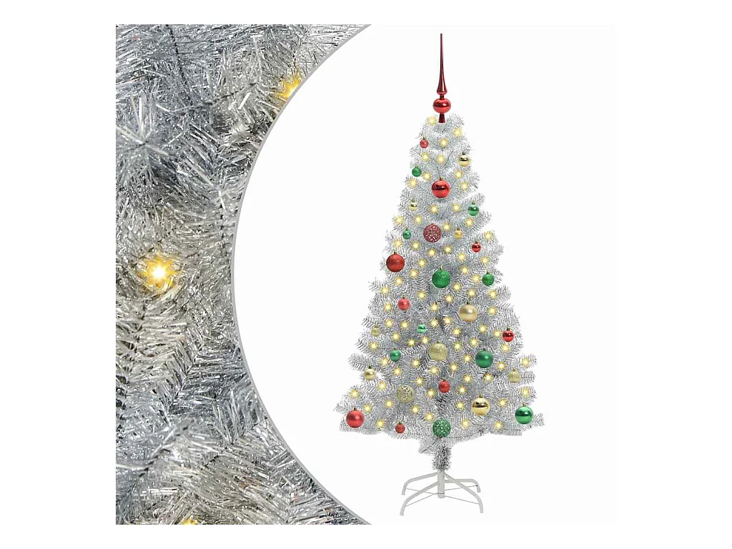 Arbre de Noël artificiel pré-éclairé/boules argenté 150 cm PET