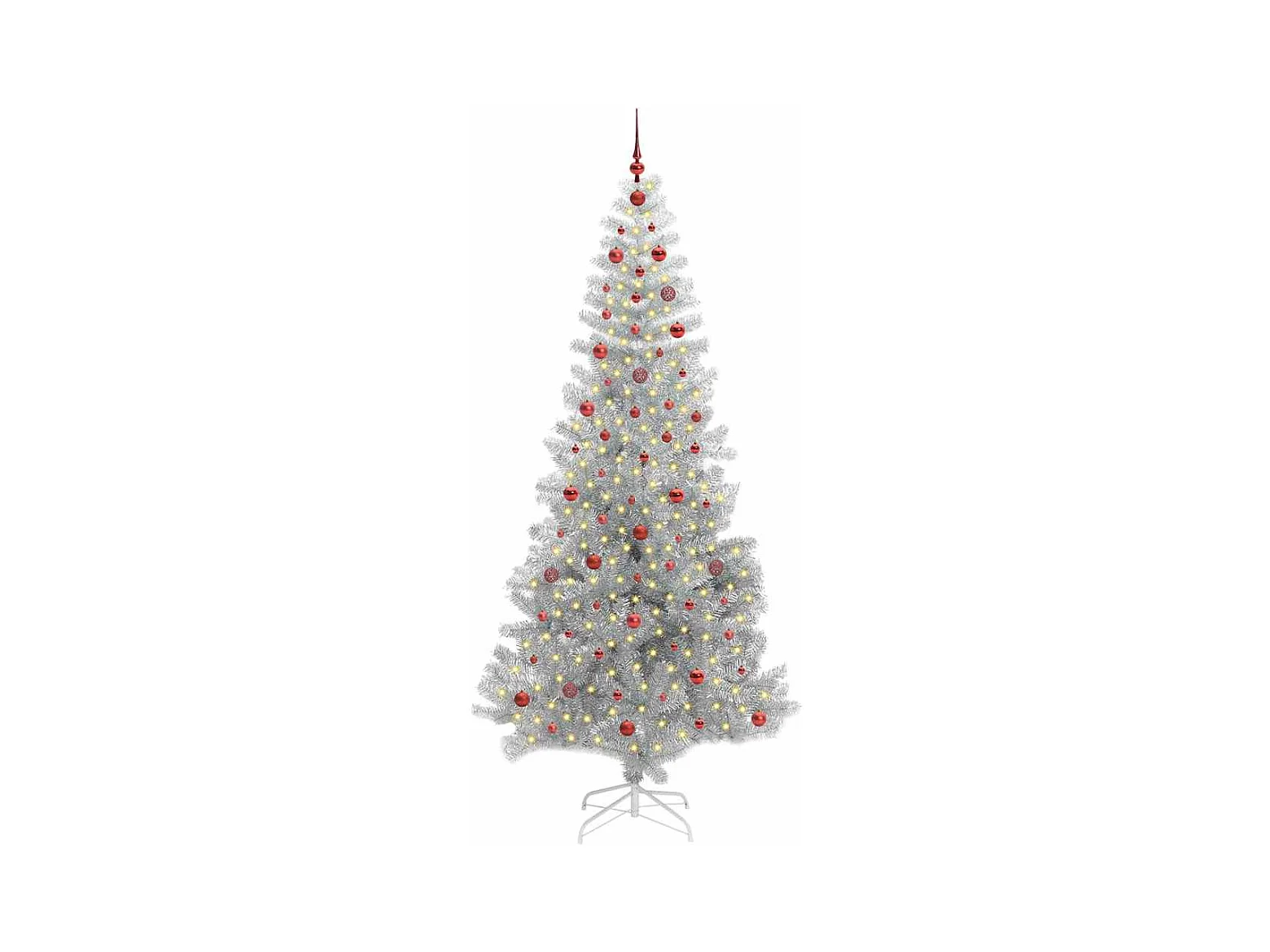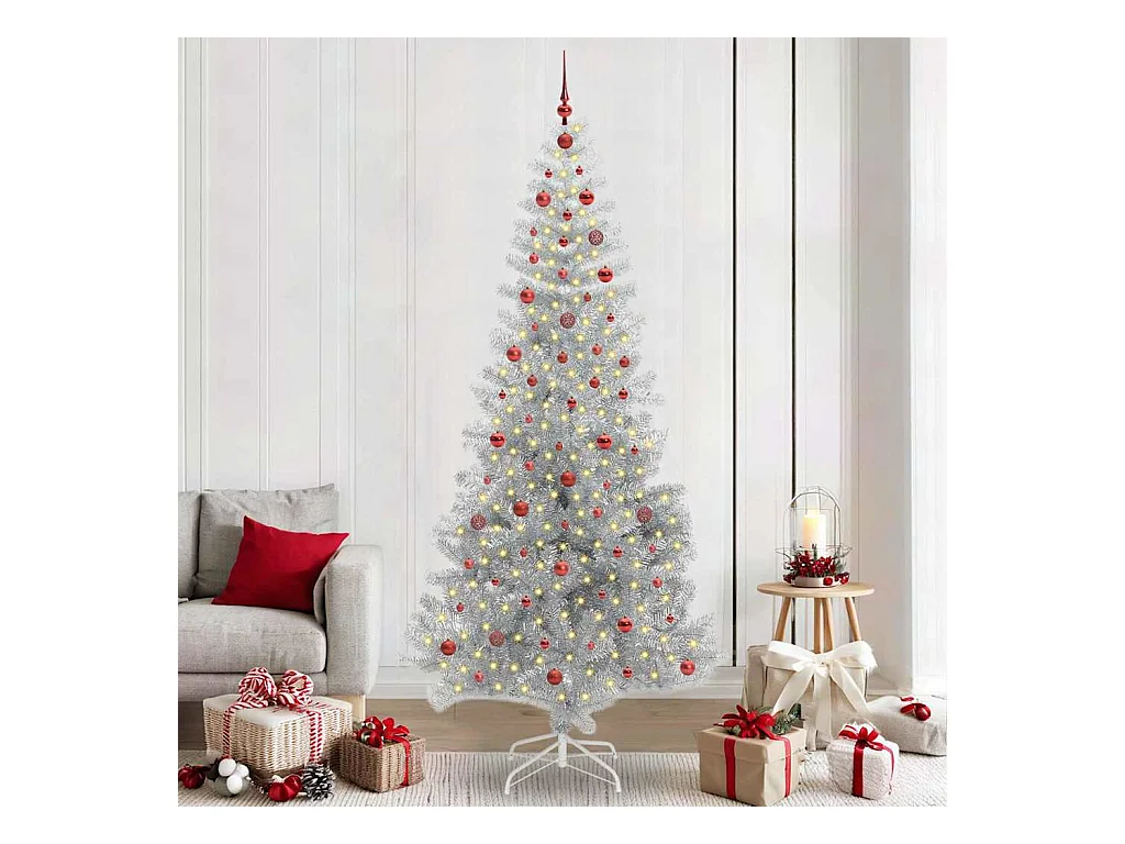 Arbre de Noël artificiel pré-éclairé/boules argenté 240 cm PET
