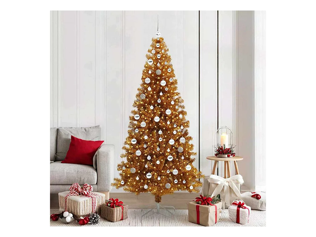 Sapin de Noël avec 300 LED avec support Doré 210 cm PET