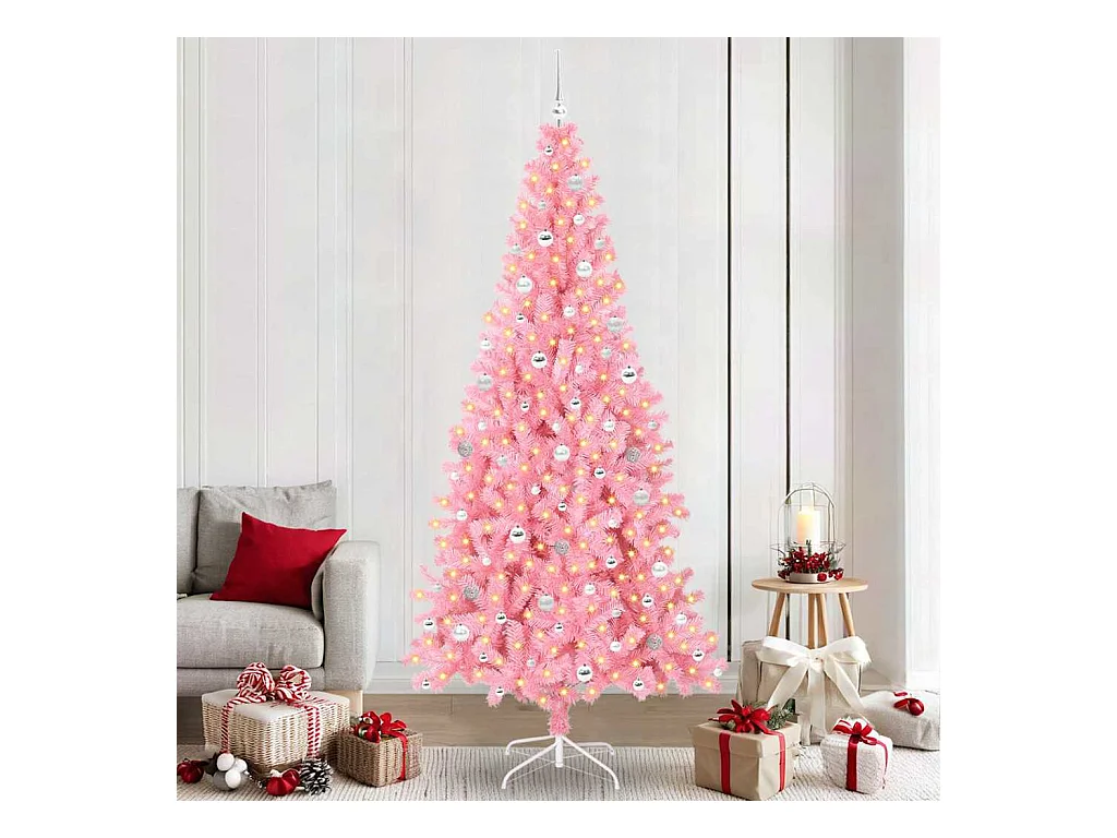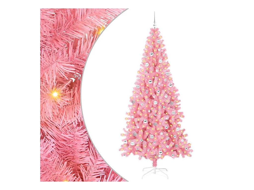 Arbre de Noël artificiel pré-éclairé et boules rose 240 cm PVC