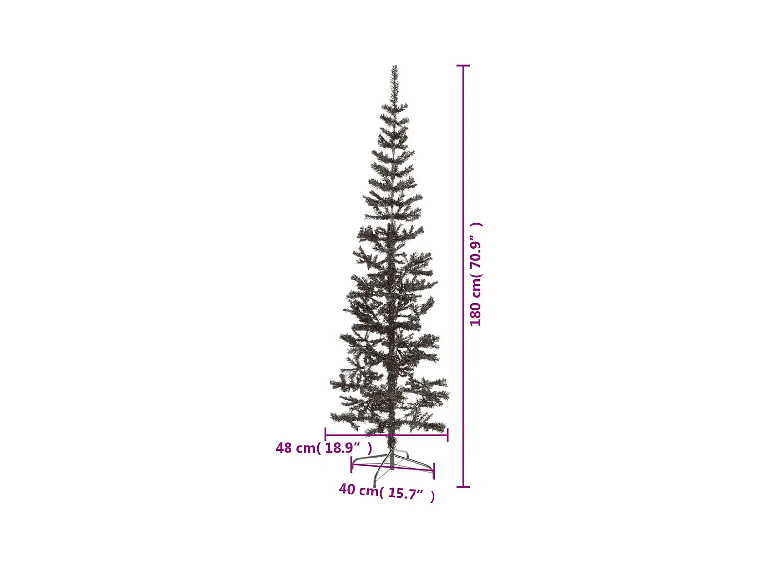 Demi sapin de Noël artificiel mince avec support Noir 180 cm