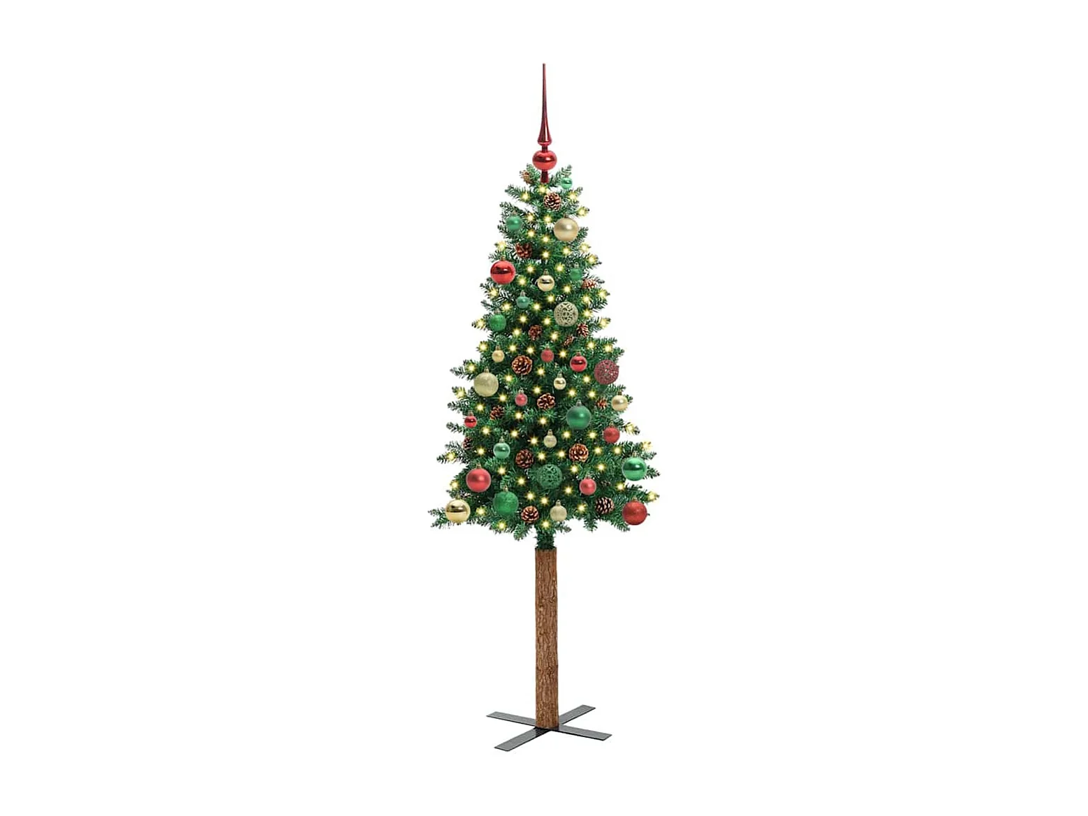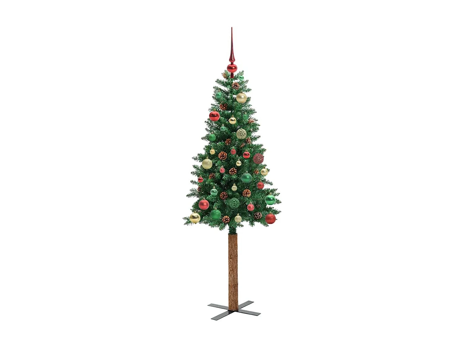 Sapin de Noël mince Vert 150 cm PVC et bois de pin massif