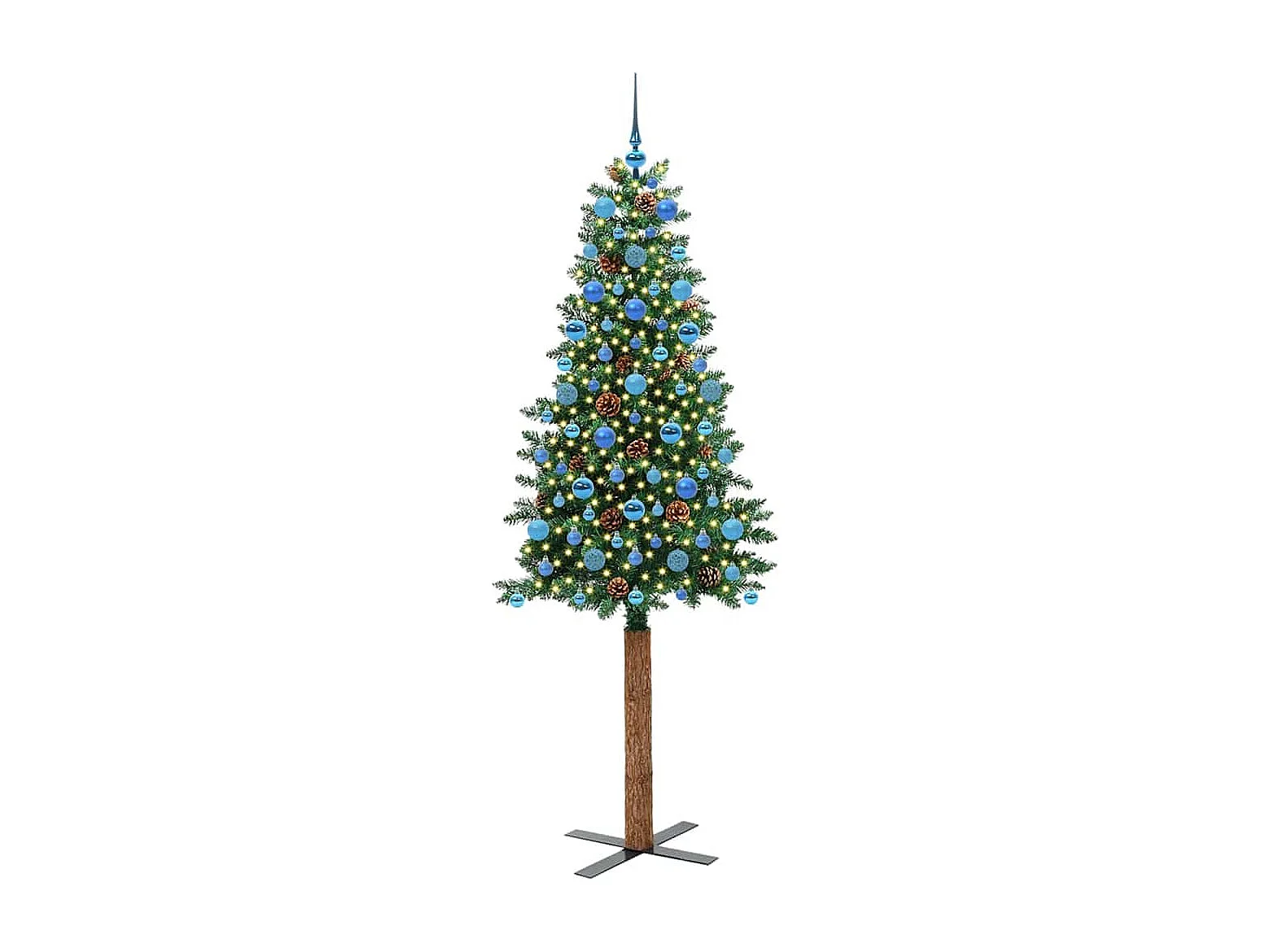 Sapin de Noël mince Vert 210 cm PVC et bois de pin massif