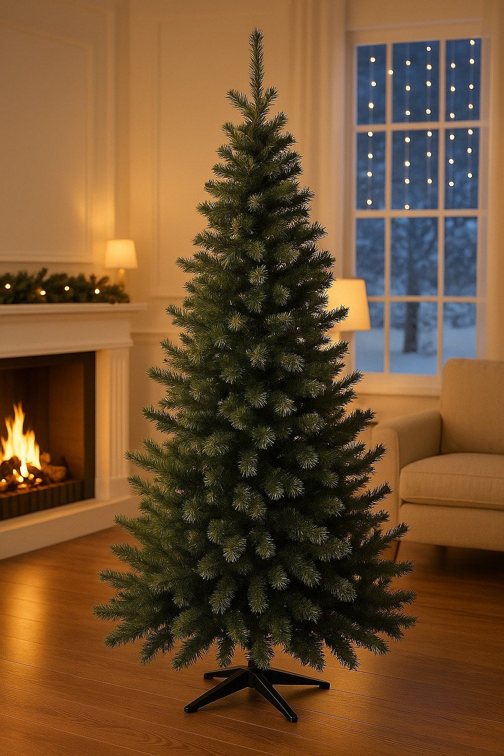 Sapin de Noël 210 cm Evergreen, Pin artificiel, Arbre à effet réel, Sapin de Noël, 124x124 h210 cm, Vert